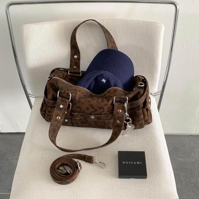 漫語 新款復古豹紋包機車鉚釘小眾跨境腋下包韓系潮流時尚單肩斜挎包女