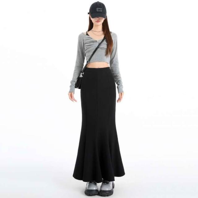 漫語 女裝 黑色魚尾裙半身裙女2026春季新款a字包臀裙高腰顯瘦休閑長裙