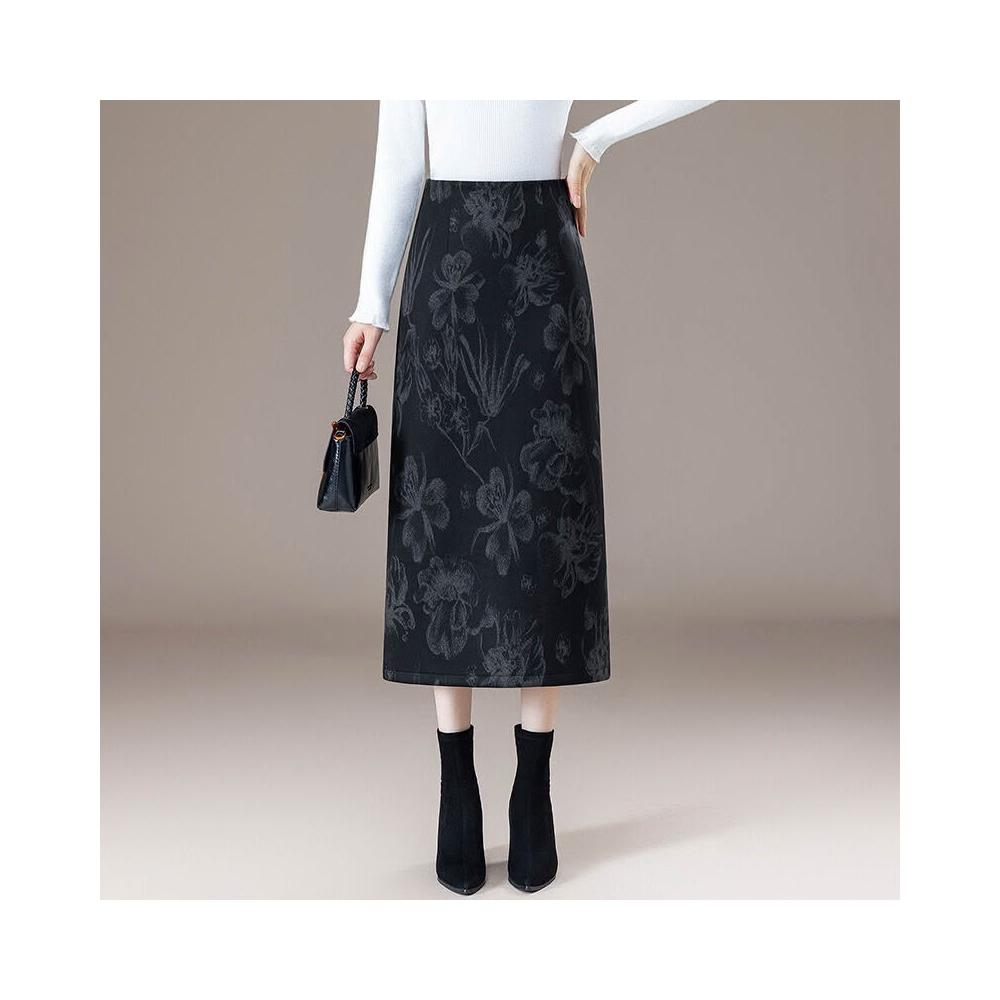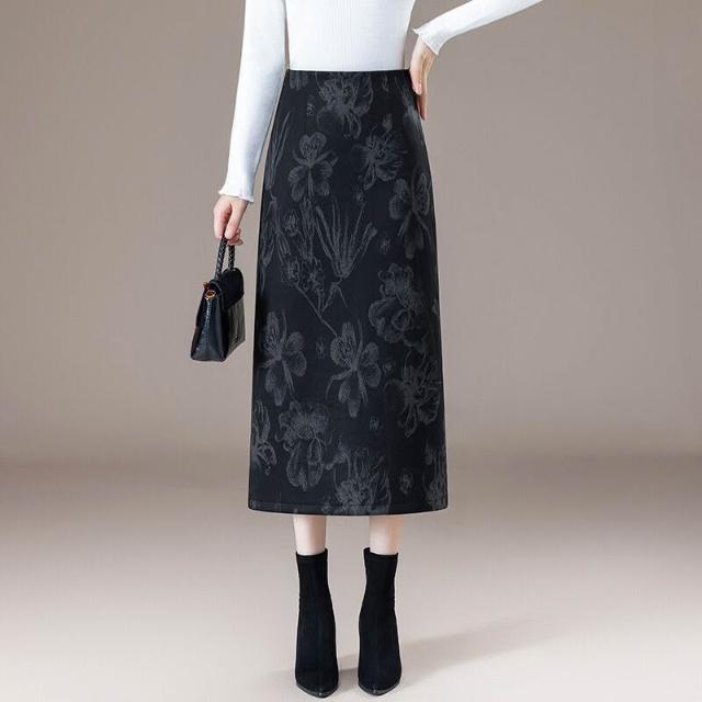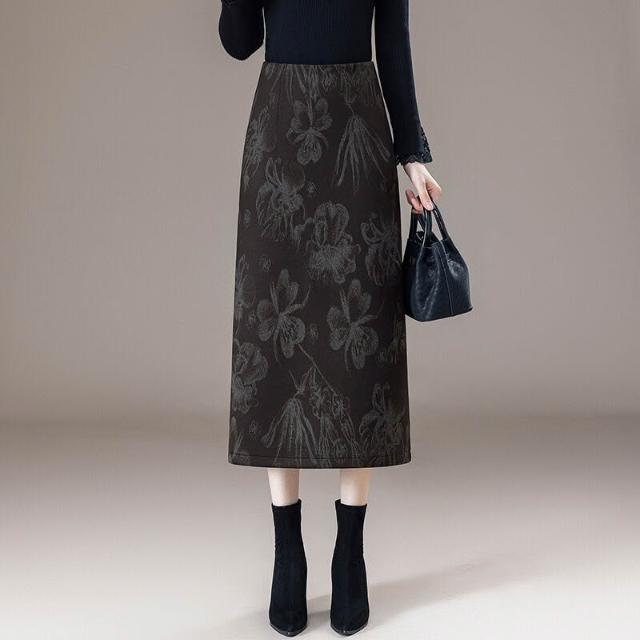 漫語 印花半身裙女秋冬2026年新款氣質時尚高腰中長款後開叉a字包臀裙