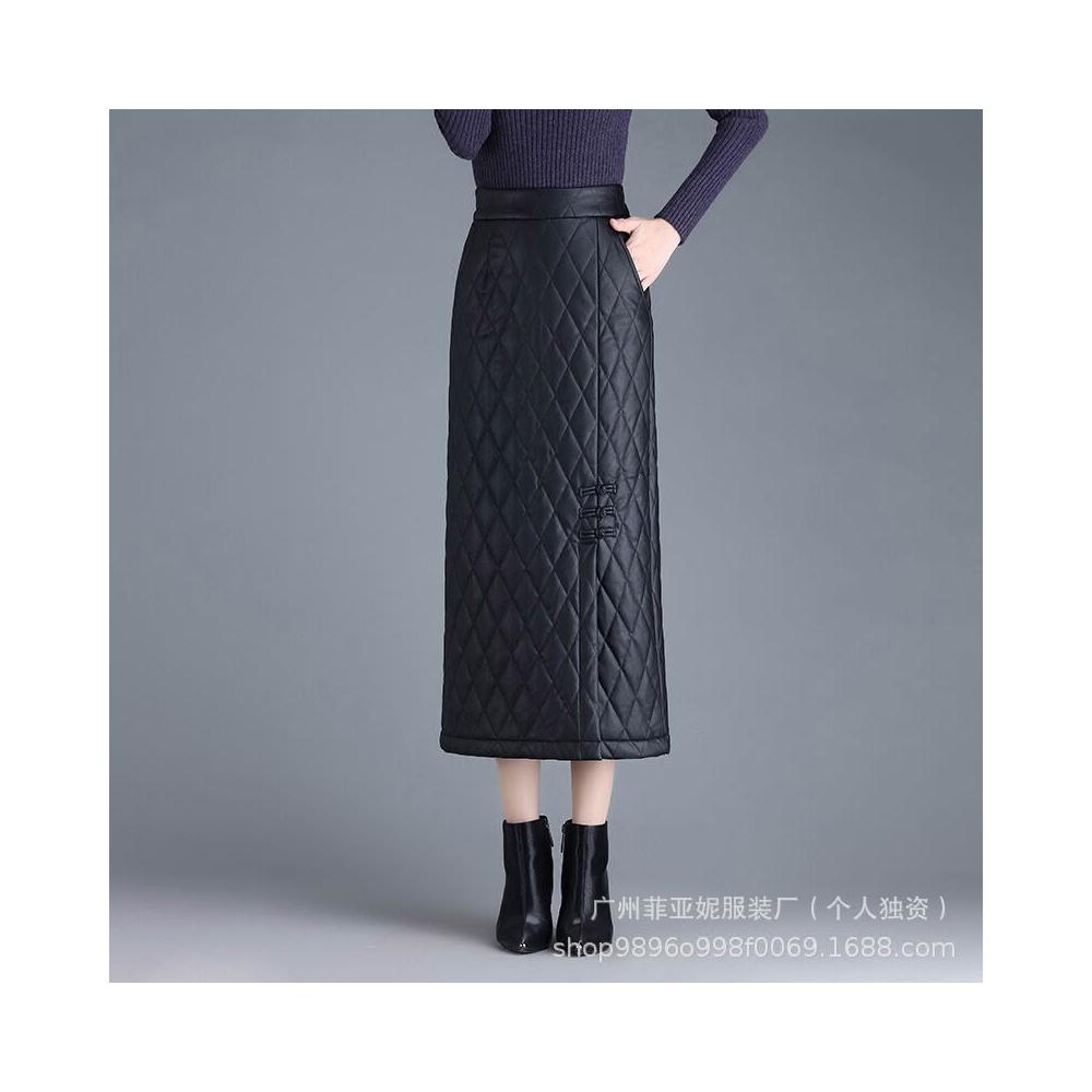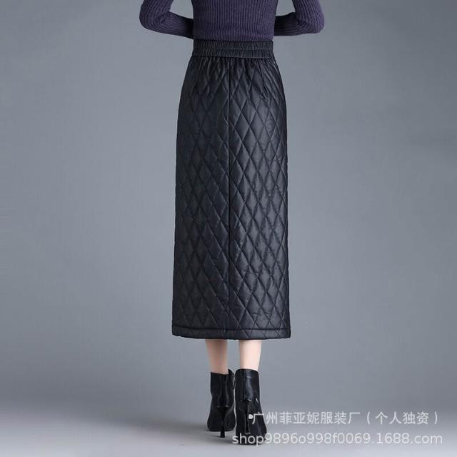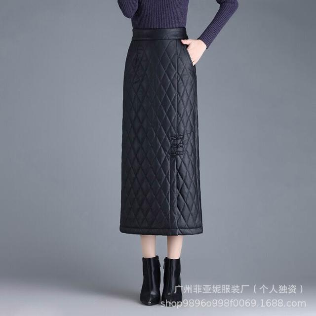漫語 加厚加棉直筒長裙pu皮裙女半身裙秋冬新款高腰顯瘦開叉一步包臀裙
