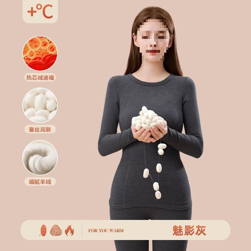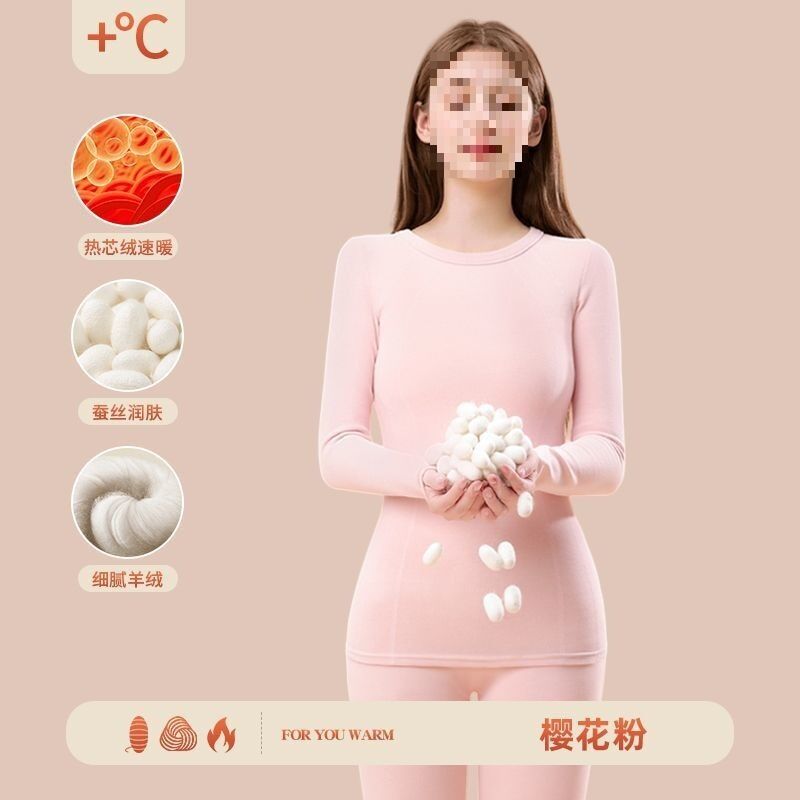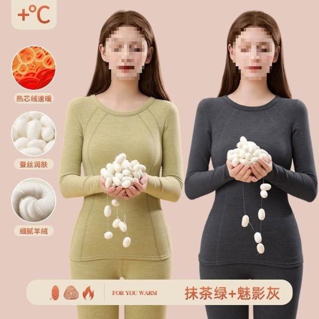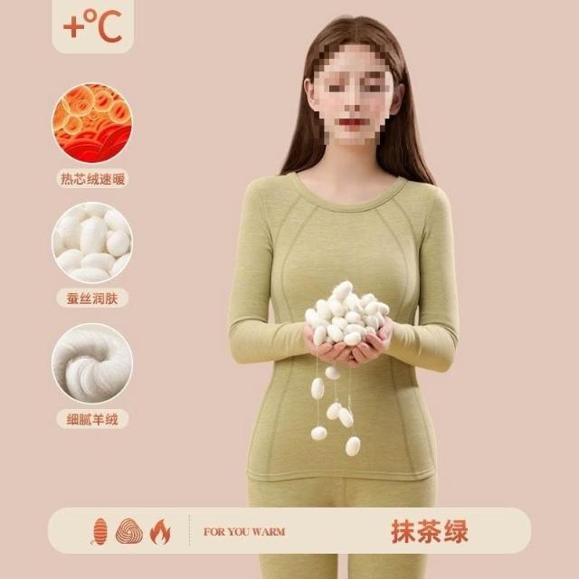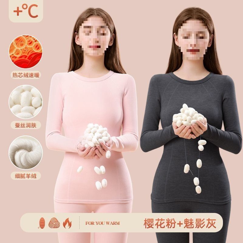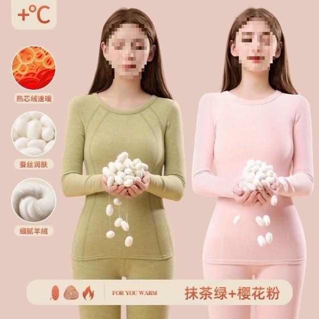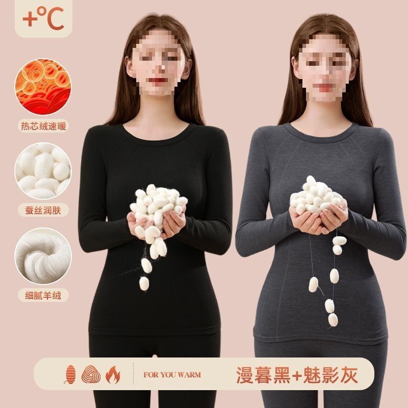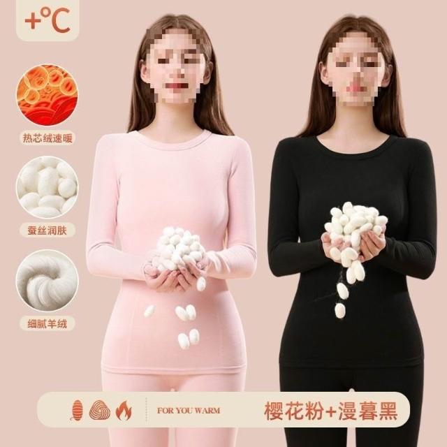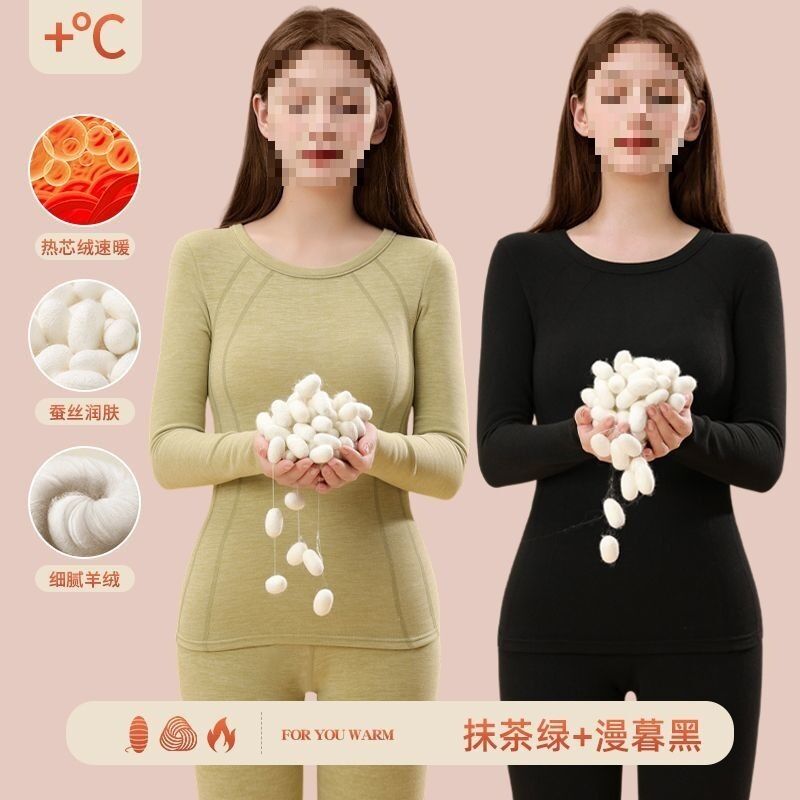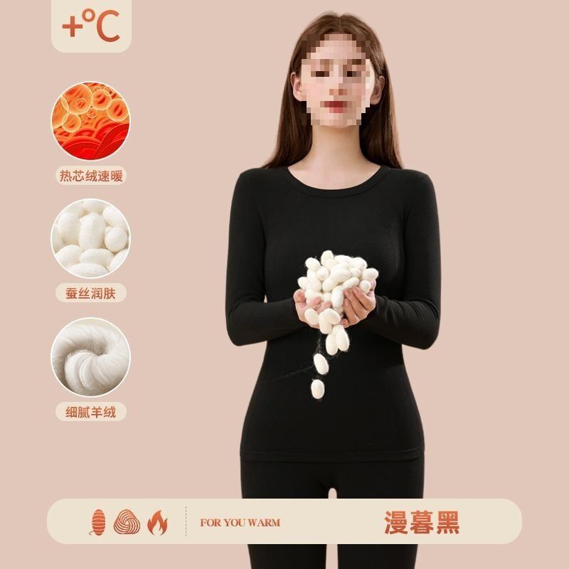 漫語 羊絨秋衣秋褲加絨女無痕蠶絲發熱加厚冬季德內穿套裝保暖內衣打底