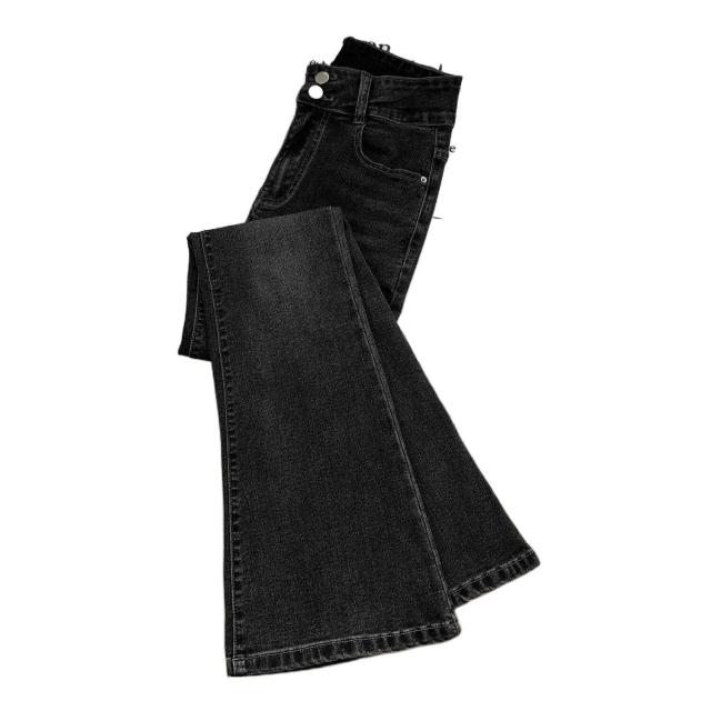 漫語 微喇牛仔褲女春秋季新款黑灰色美式彈力顯瘦喇叭褲微喇馬蹄褲子女