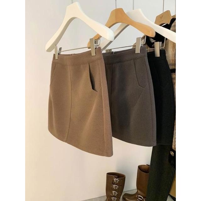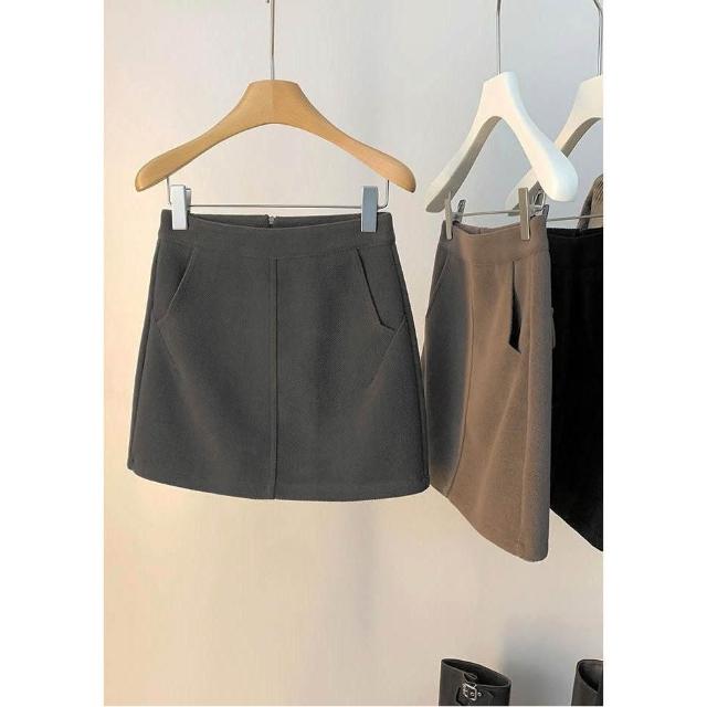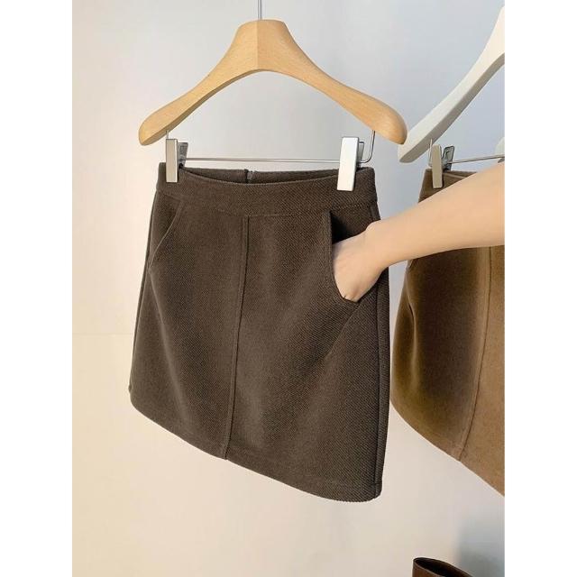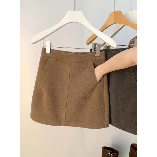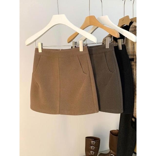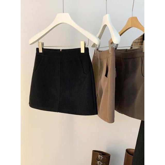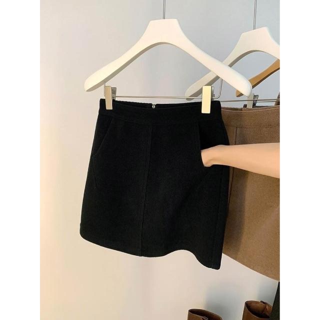 漫語 韓系穿搭短款半身裙女毛呢字裙春秋冬季新款高腰顯瘦百搭包臀裙