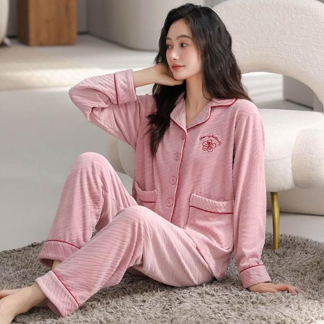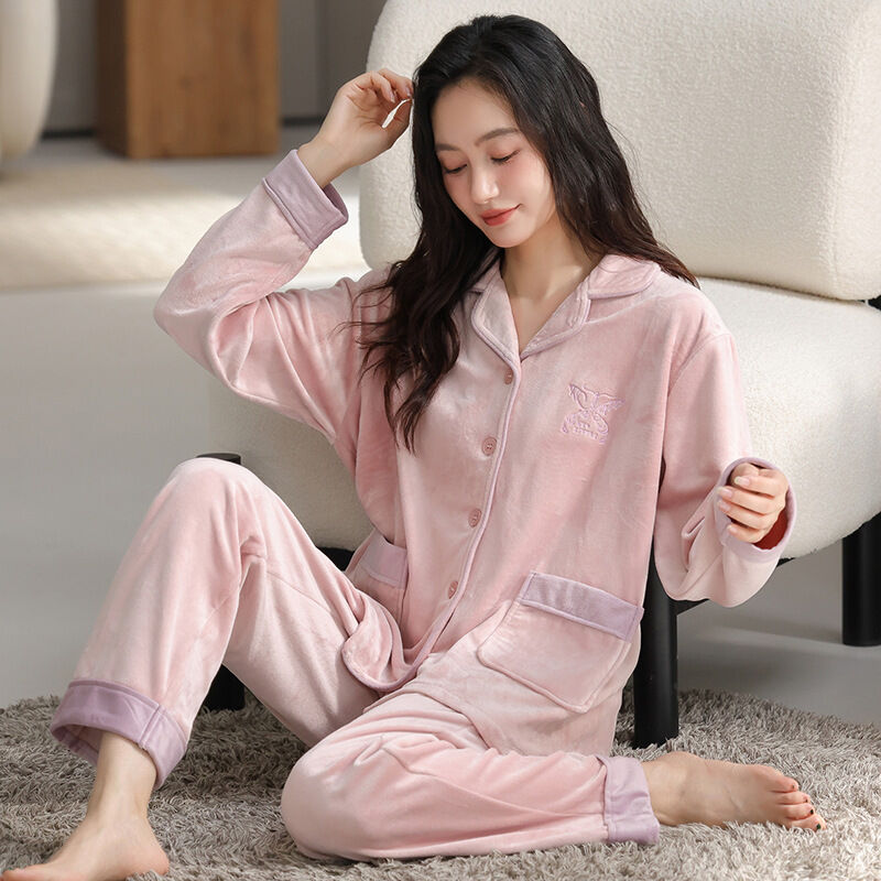漫語 珊瑚絨睡衣女秋冬加厚開衫薄絨法蘭絨春秋薄款可外穿海島絨家居服