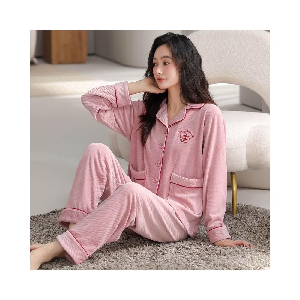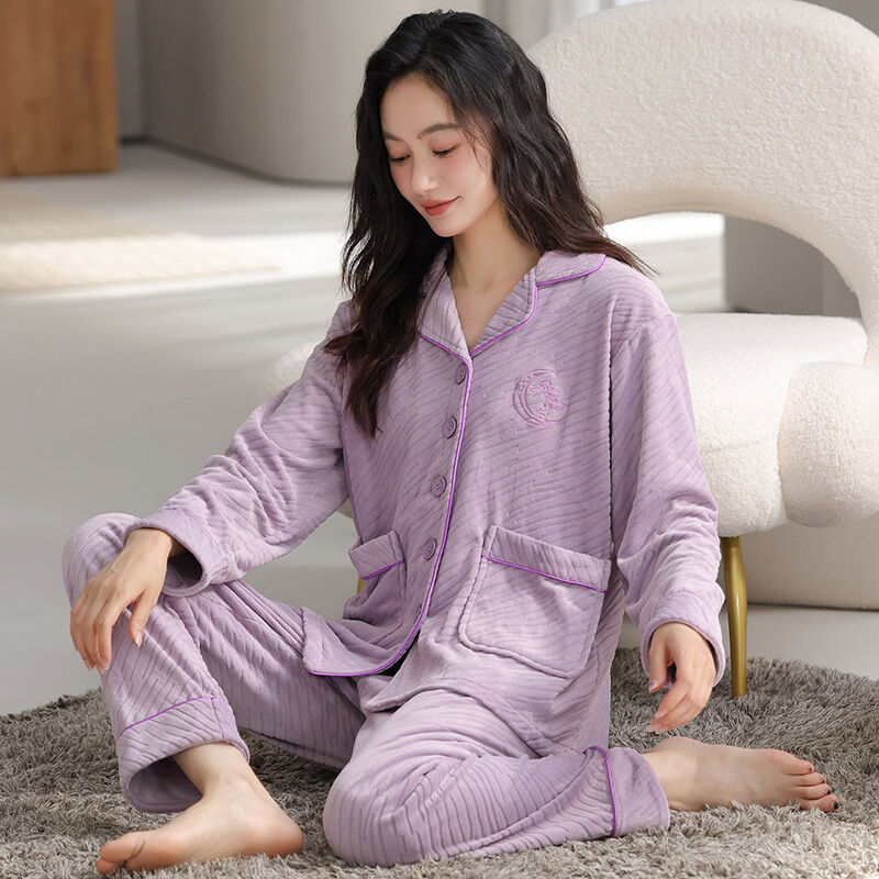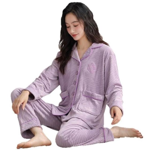 漫語 珊瑚絨睡衣女秋冬加厚開衫薄絨法蘭絨春秋薄款可外穿海島絨家居服