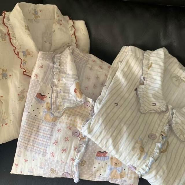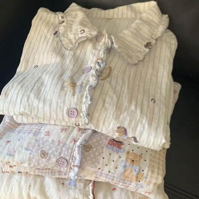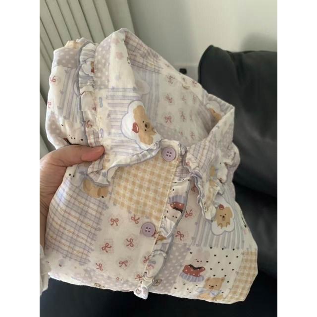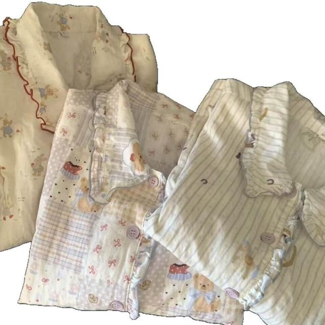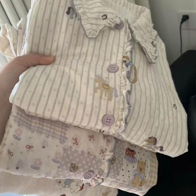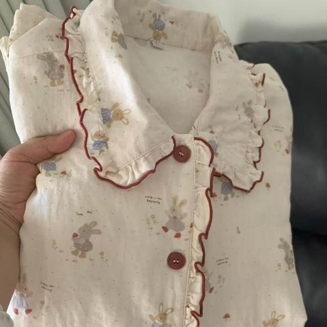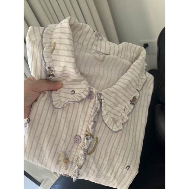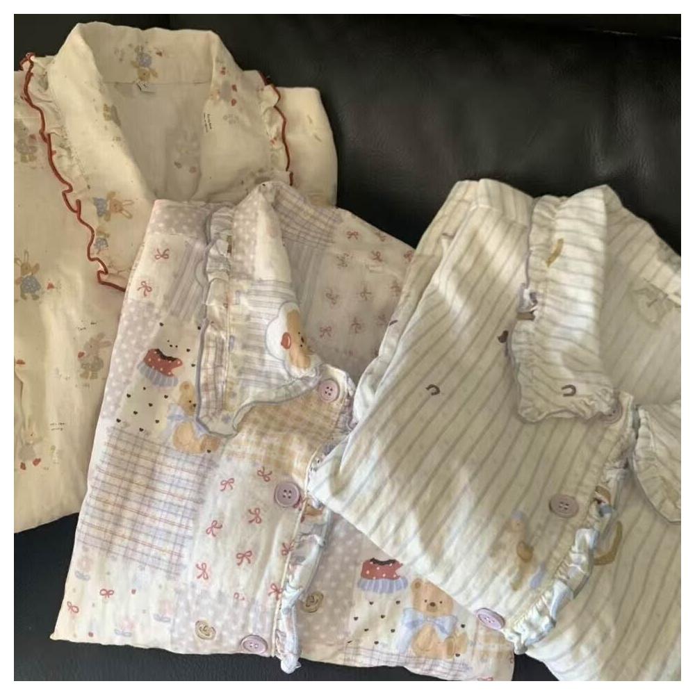 漫語 新品!甜美少女純棉雙層紗花邊長袖睡衣女秋季家居服套裝可外穿