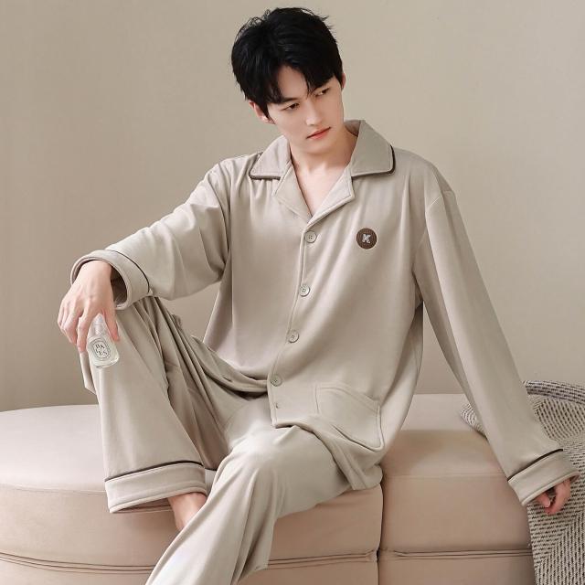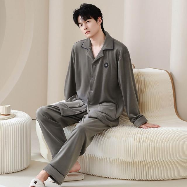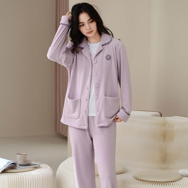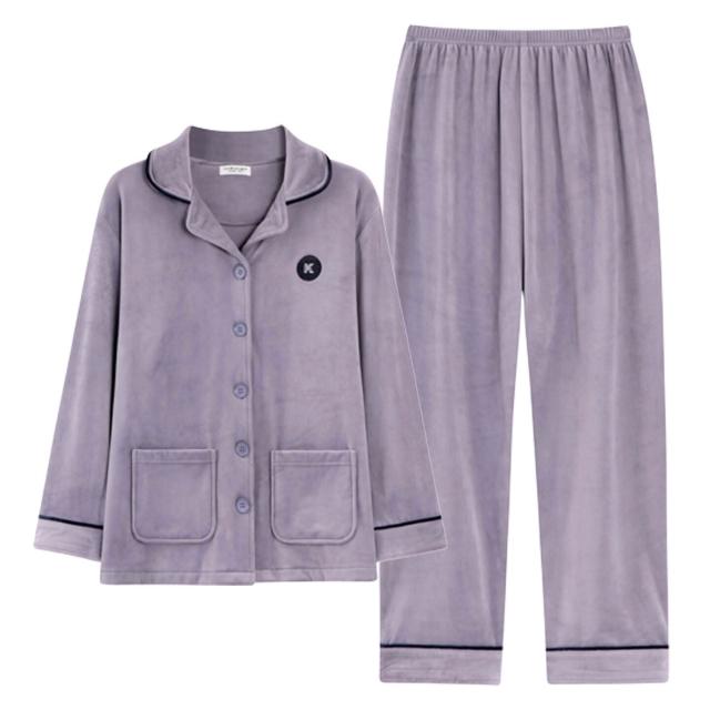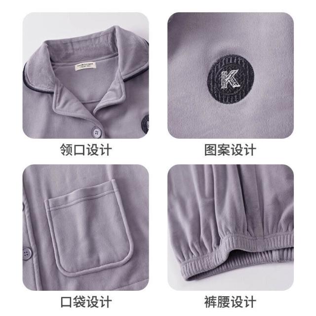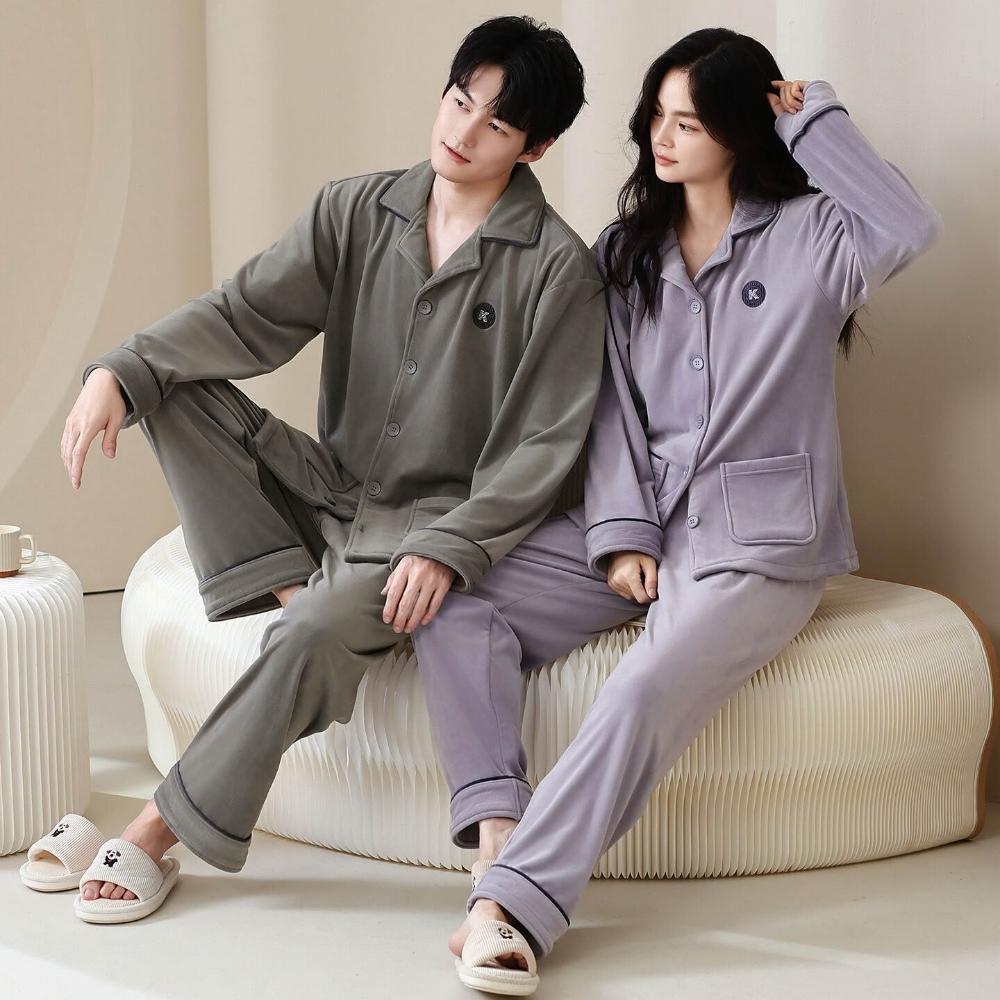 漫語 抗靜電海島絨冬季情侶睡衣加厚保暖簡約開衫款男女士家居服