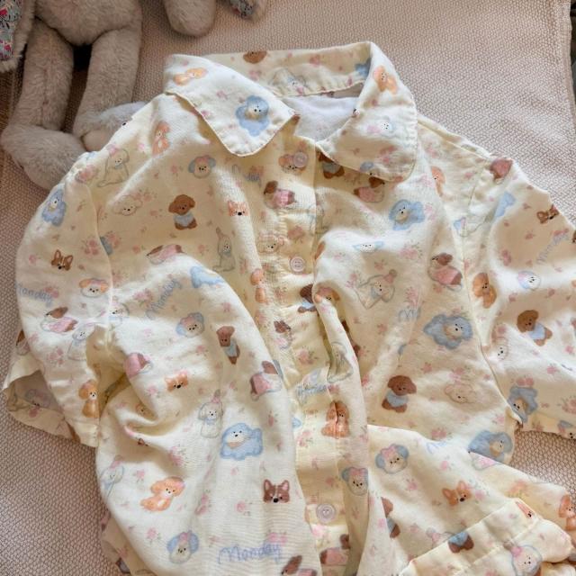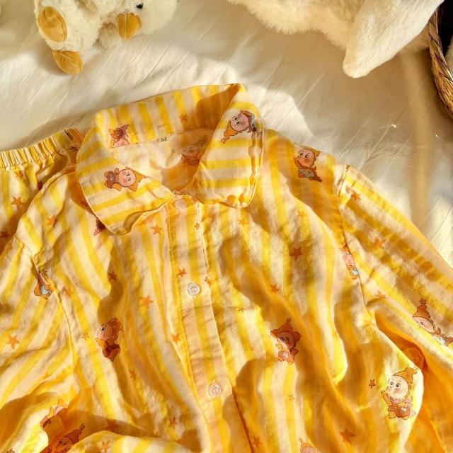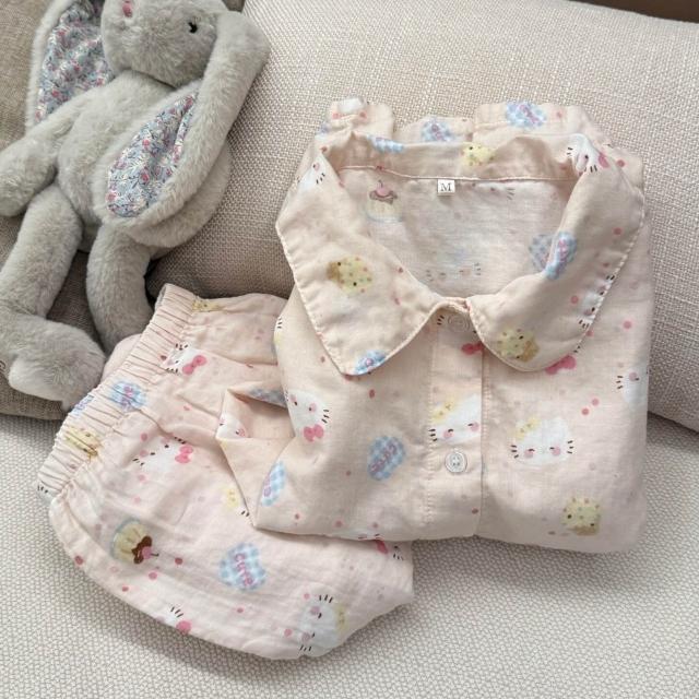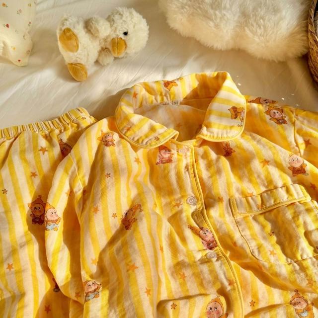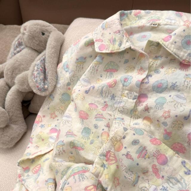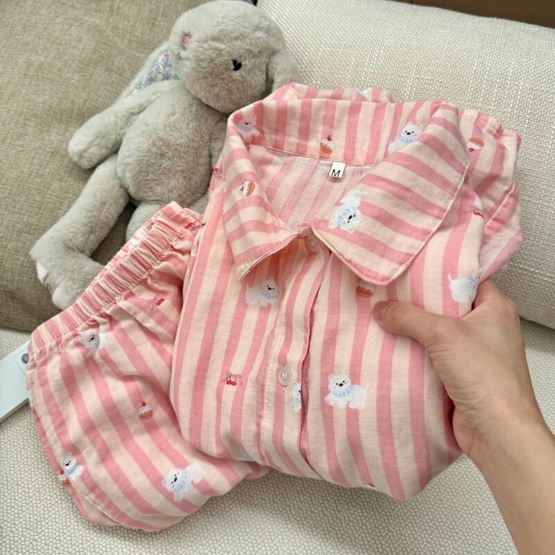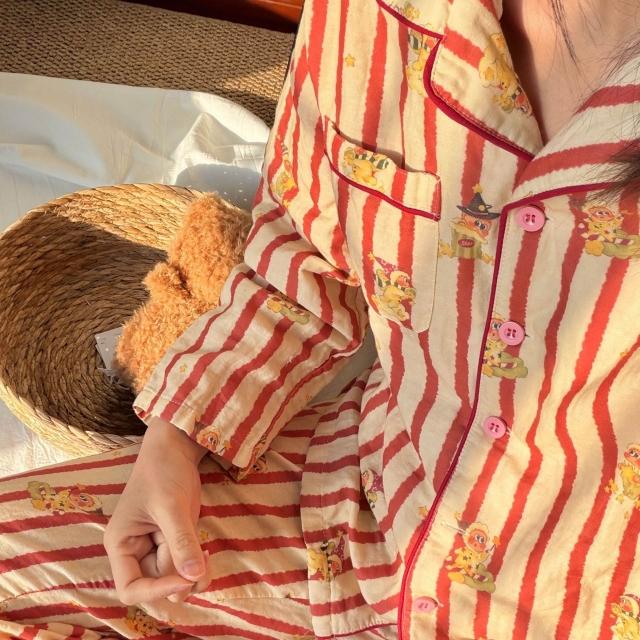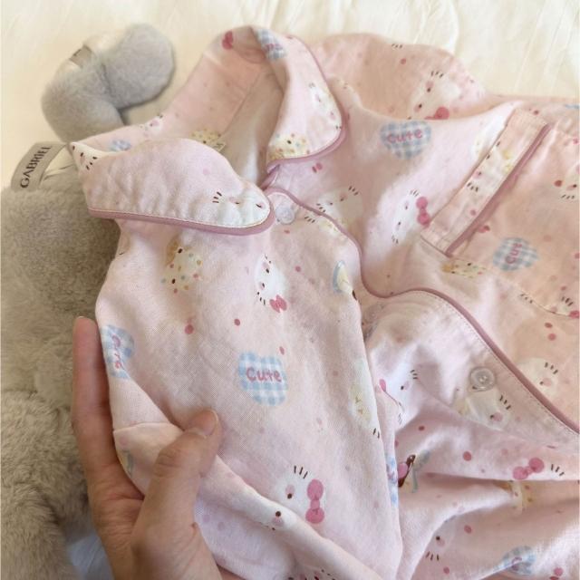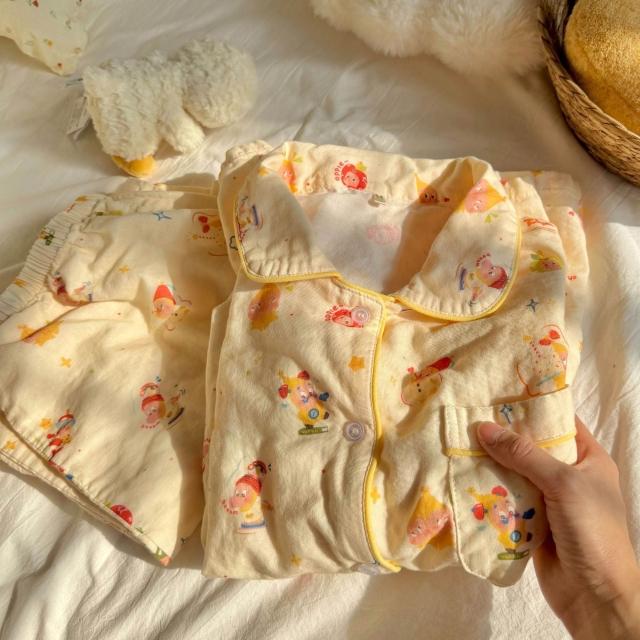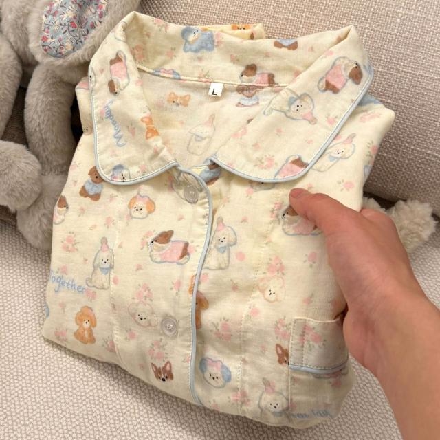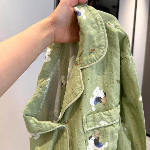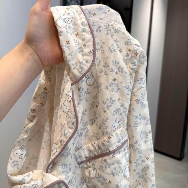 漫語 方領長袖長褲100棉A類雙層紗睡衣套裝純棉紗布月子家居服透氣親膚