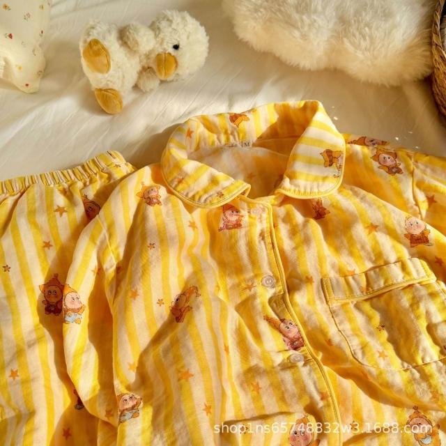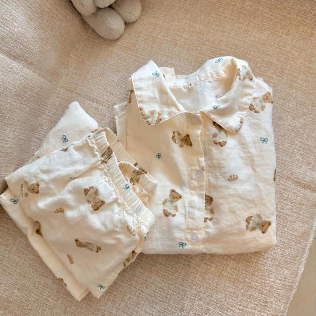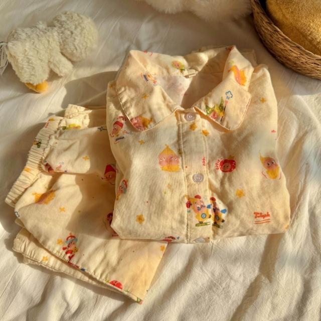 漫語 方領長袖長褲100棉A類雙層紗睡衣套裝純棉紗布月子家居服透氣親膚