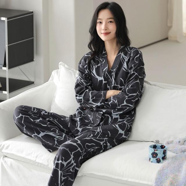 漫語 95棉拉架爽棉長袖新款長褲睡衣女高檔家居服春秋可外穿冬天套裝女