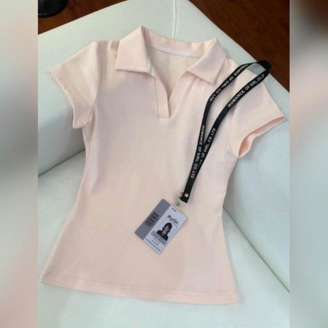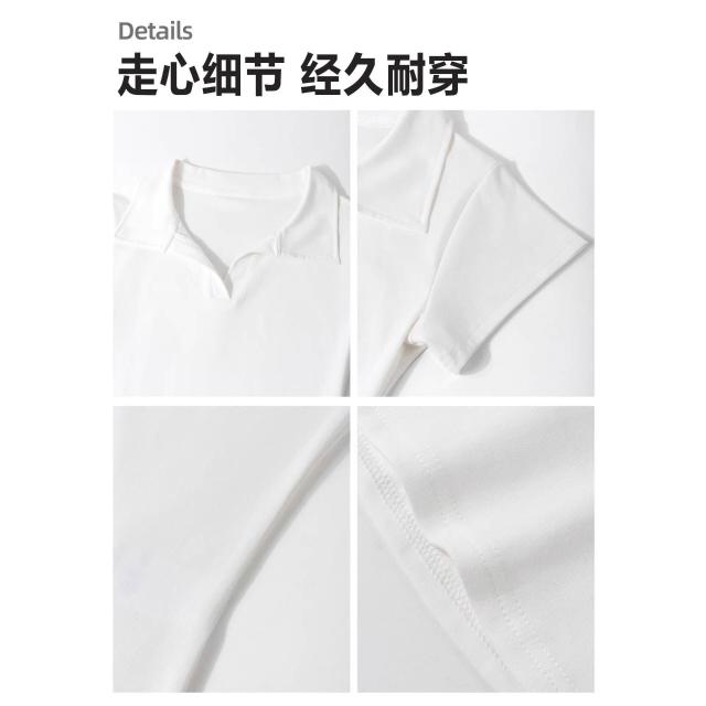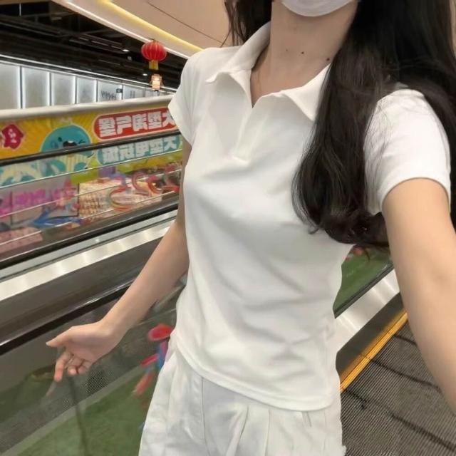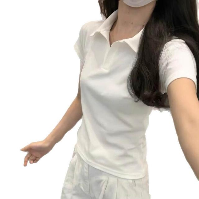 漫語 白色polo衫短袖t恤女士V領修身上衣夏季2026新款正肩半袖運動休閑