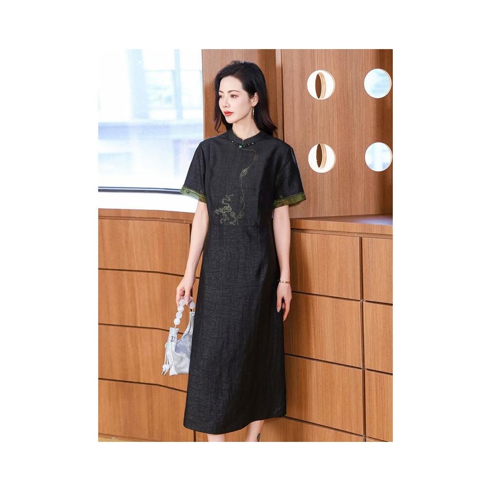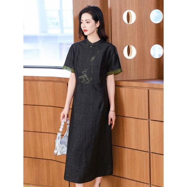 漫語 真絲香雲紗連衣裙女2026夏裝新款改良旗袍媽媽裝喜婆婆桑蠶絲裙子