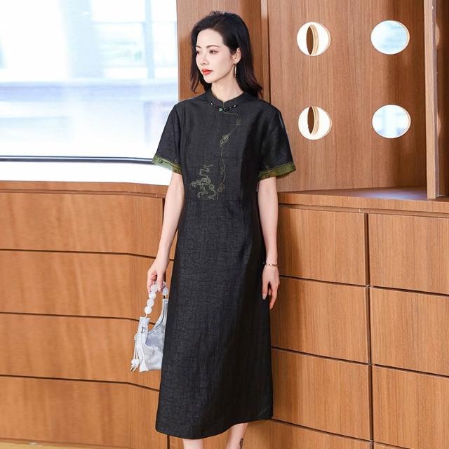 漫語 真絲香雲紗連衣裙女2026夏裝新款改良旗袍媽媽裝喜婆婆桑蠶絲裙子