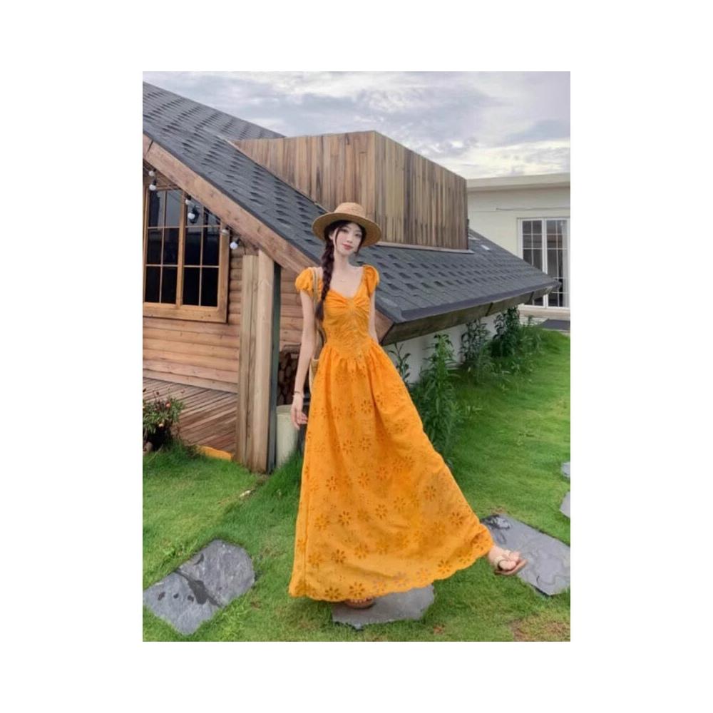 漫語 甜美刺繡镂空氣質連衣裙女2026夏季新款法式度假風收腰顯瘦茶歇裙