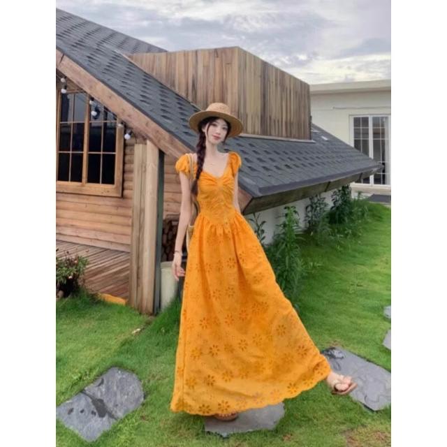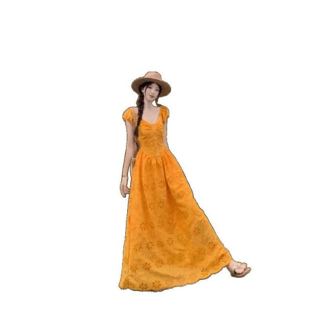 漫語 甜美刺繡镂空氣質連衣裙女2026夏季新款法式度假風收腰顯瘦茶歇裙