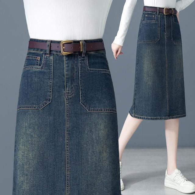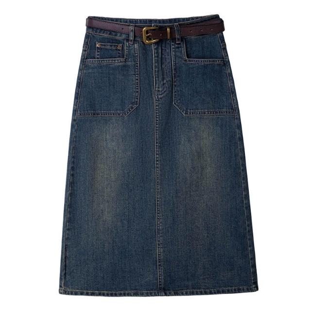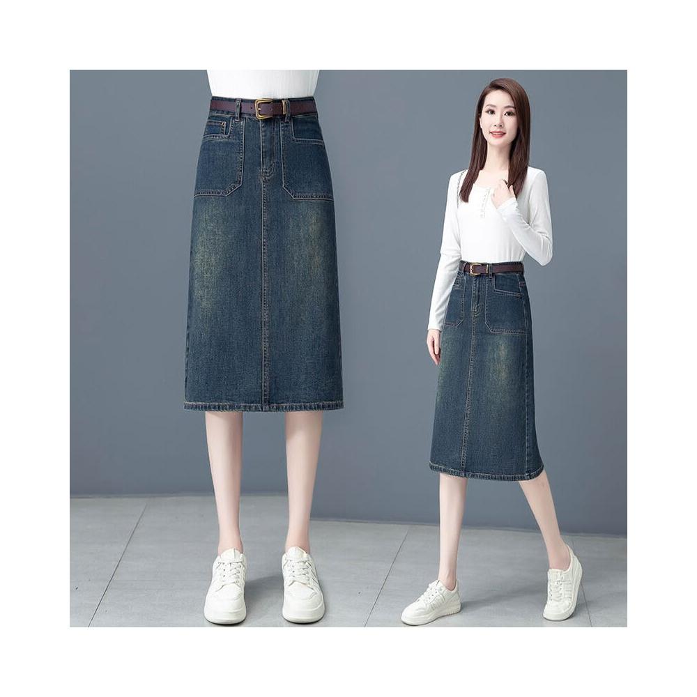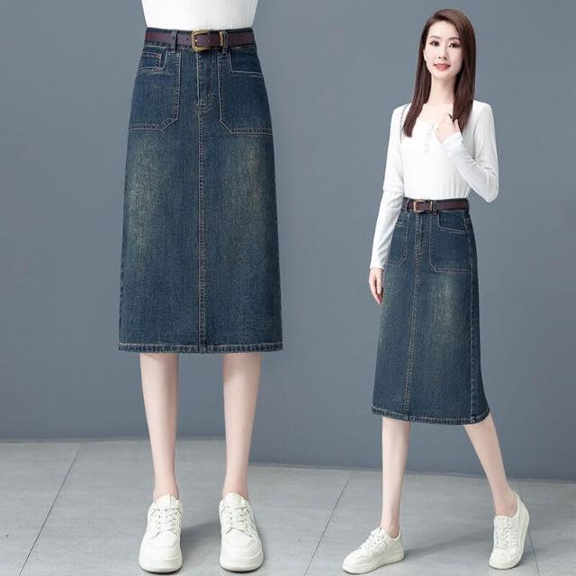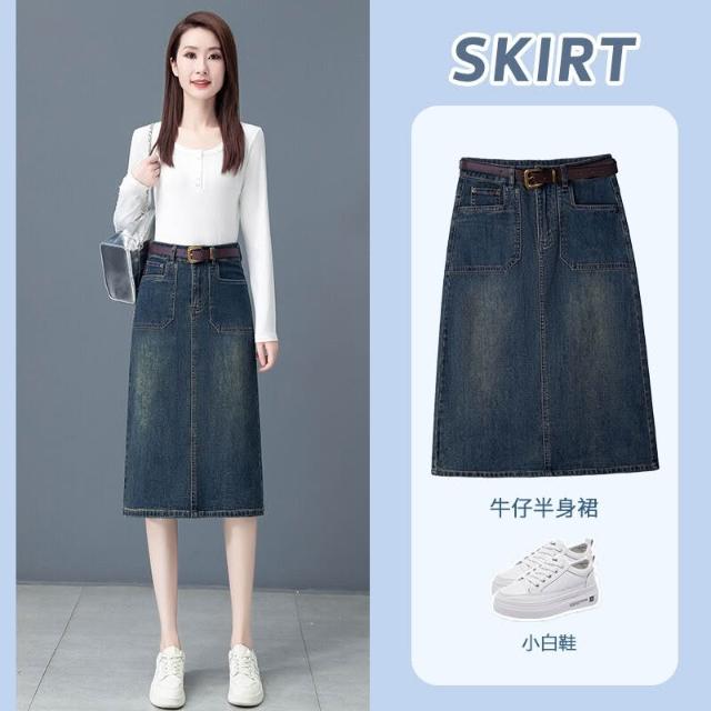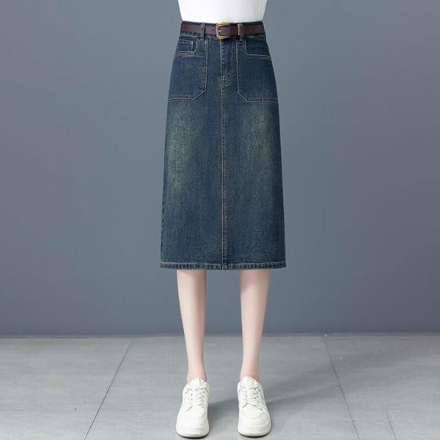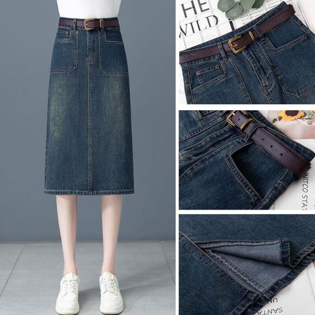 漫語 中長款牛仔半身裙女2026春夏新款高腰顯瘦a字裙後開叉一步包臀裙