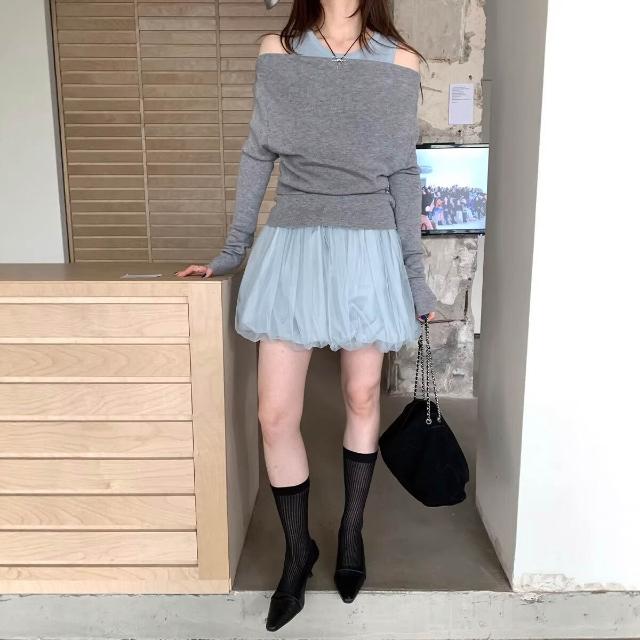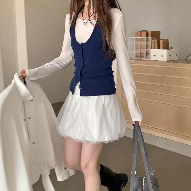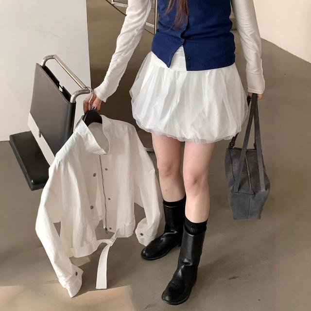 漫語 高腰花苞裙子2026春季新款女裝十三行韓系減齡網紗短款半身裙女