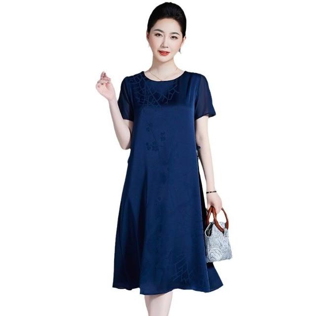 漫語 冰絲連衣裙夏季新款喜婆婆紅色中長裙中老年媽媽裝婚宴仿真絲裙子