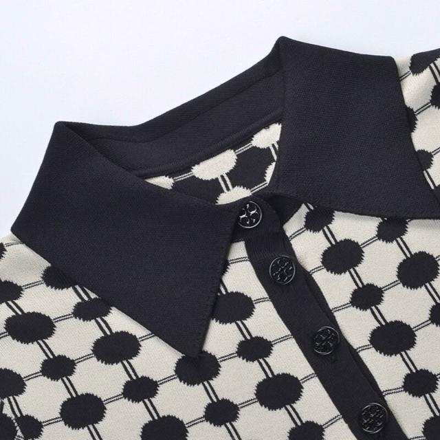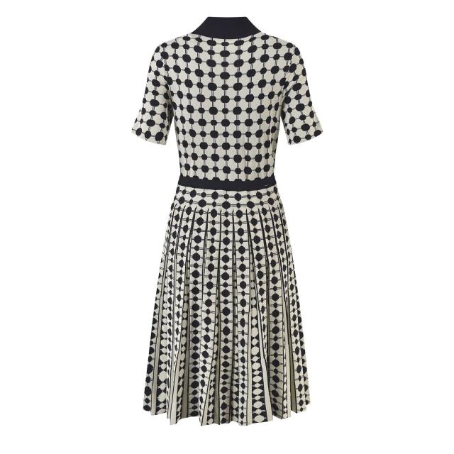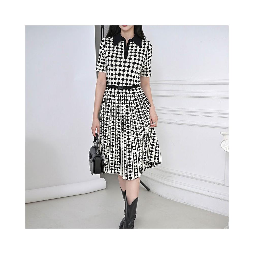 漫語 2025夏季新款法式氣質提花波點Polo式收腰針織百褶連衣裙含腰帶