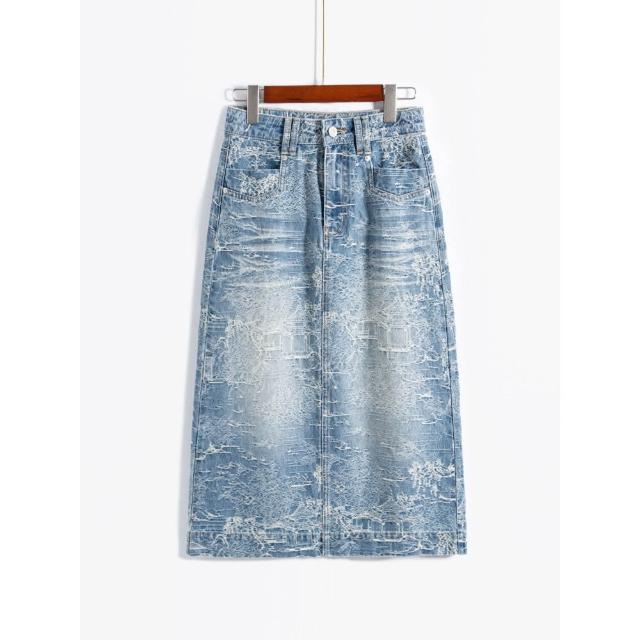 漫語 新中式清明上河圖提花牛仔直筒裙—高級感2026新款顯瘦半身裙776