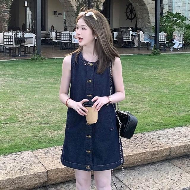 漫語 無袖背心牛仔連衣裙女小個子2025初夏穿搭今年流行的漂亮裙子女潮