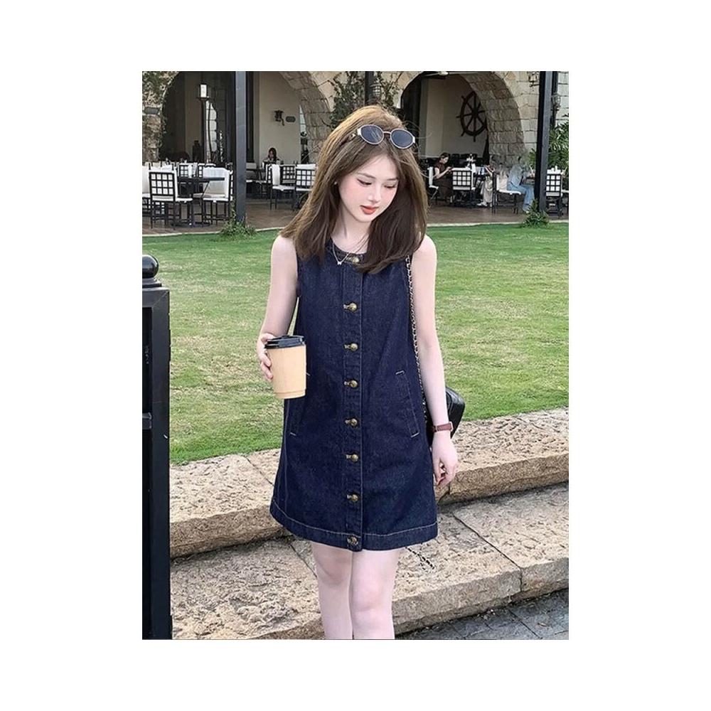 漫語 無袖背心牛仔連衣裙女小個子2025初夏穿搭今年流行的漂亮裙子女潮