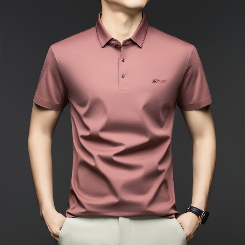 漫語 2025夏季新款純色翻領短袖T恤男士休閑Polo衫中年爸爸裝休閑上衣