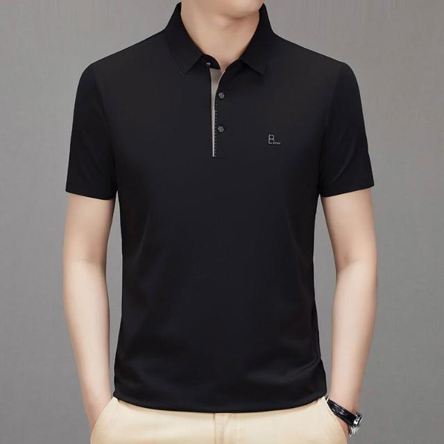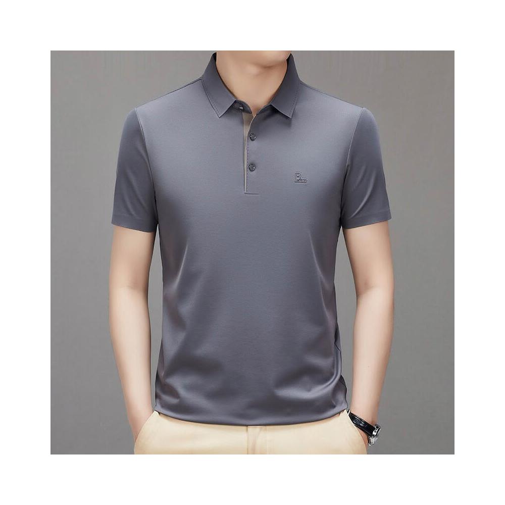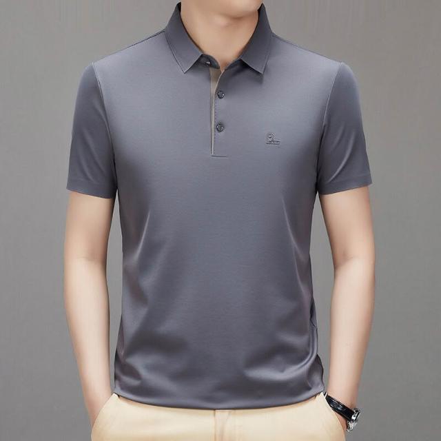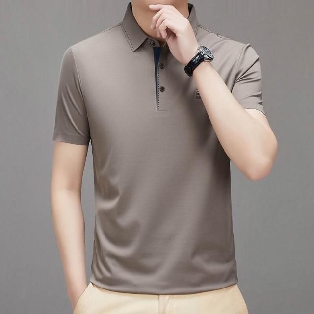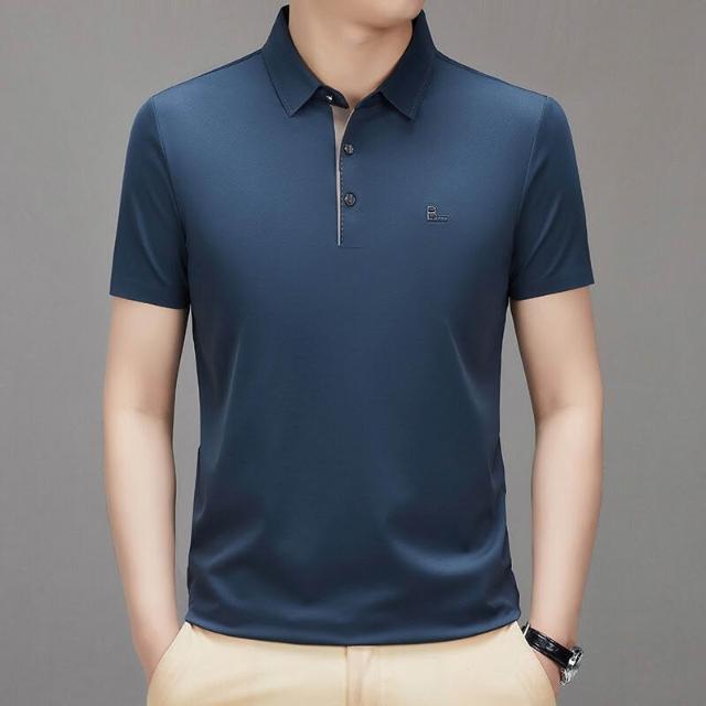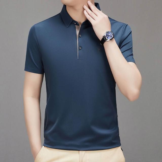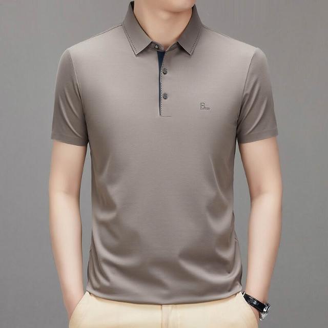 漫語 夏季新款男式翻領短袖無痕T恤衫中年父親裝上衣服薄款免燙Polo衫