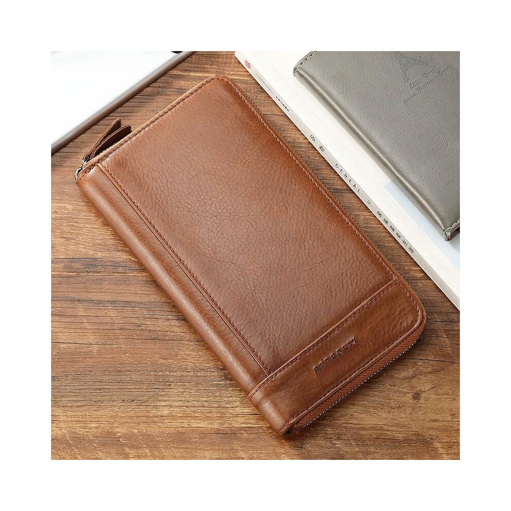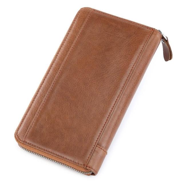漫語 真皮錢包男士復古風長款多卡位頭層牛皮手拿包卡包RFID多功能皮夾