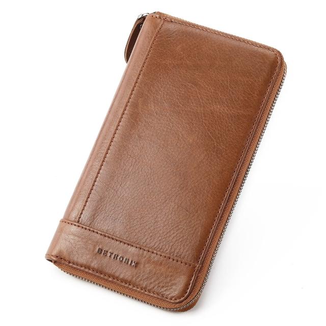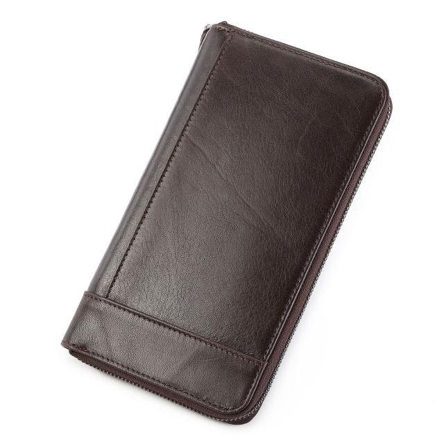 漫語 真皮錢包男士復古風長款多卡位頭層牛皮手拿包卡包RFID多功能皮夾