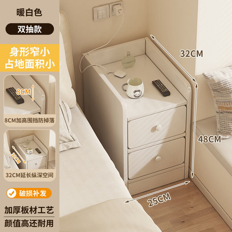 漫語 奶油風床頭櫃超窄小型簡易夾縫收納櫃簡約迷你臥室床邊窄櫃置物架
