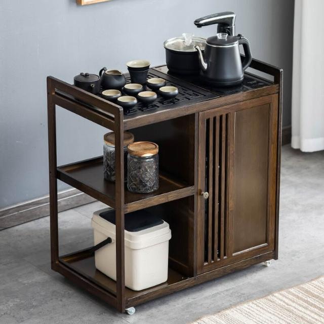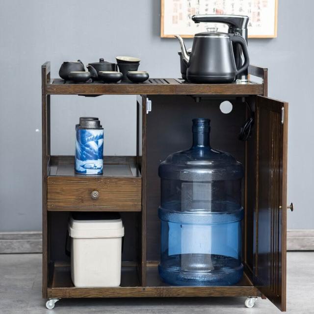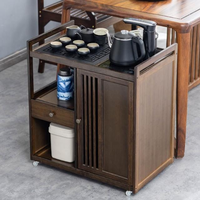 漫語 移動茶水櫃茶桌副櫃邊櫃側茶臺燒水壺茶盤一體小型旁邊的置物架小