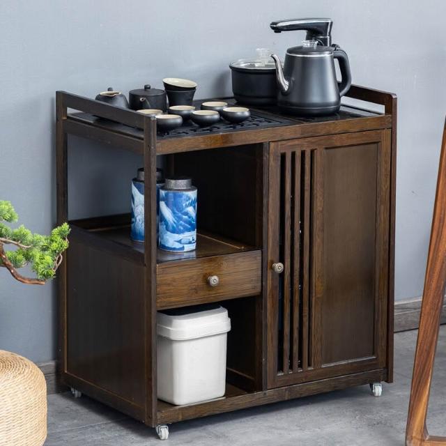 漫語 移動茶水櫃茶桌副櫃邊櫃側茶臺燒水壺茶盤一體小型旁邊的置物架小
