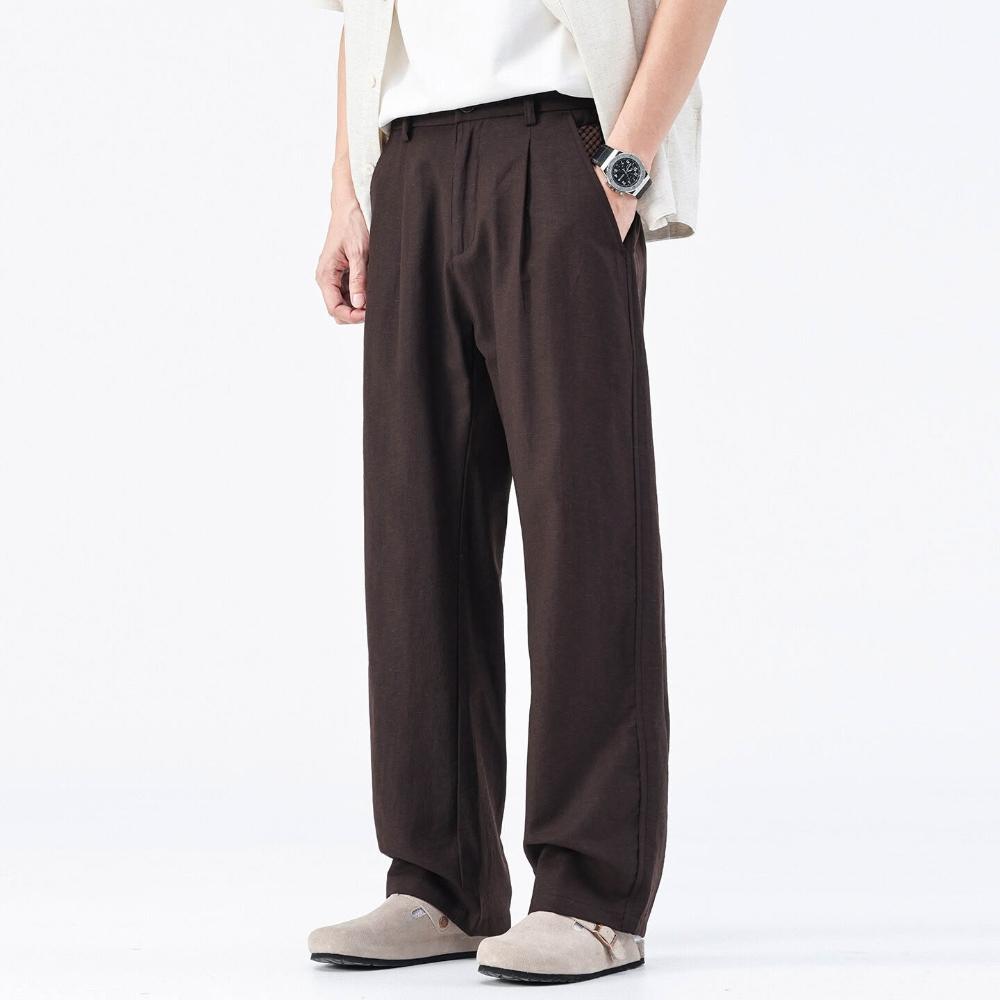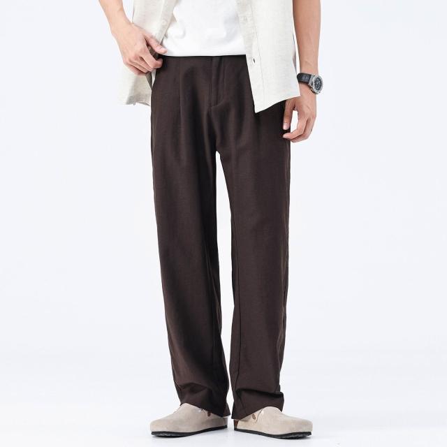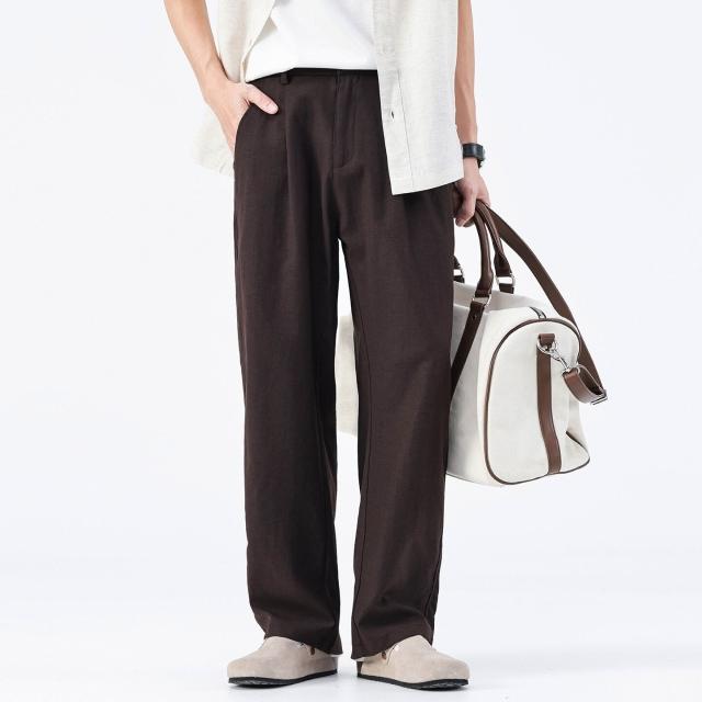 漫語 2026春夏老錢風亞麻休閑褲男士直筒垂感萊塞爾天絲通勤簡約長褲子