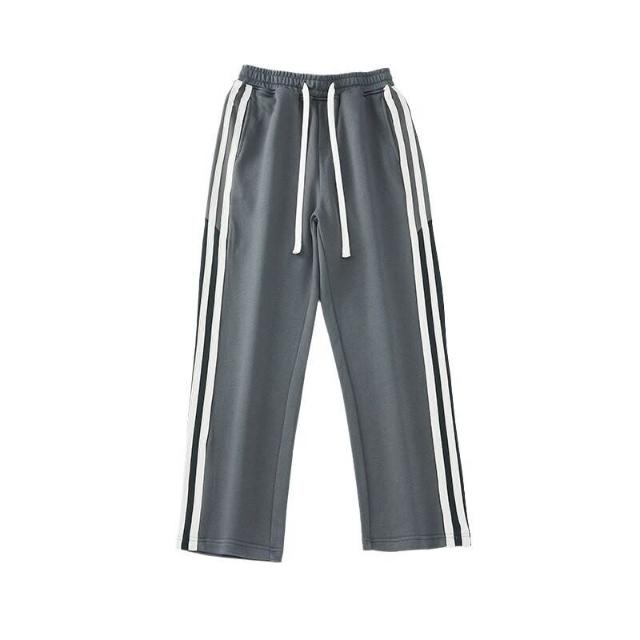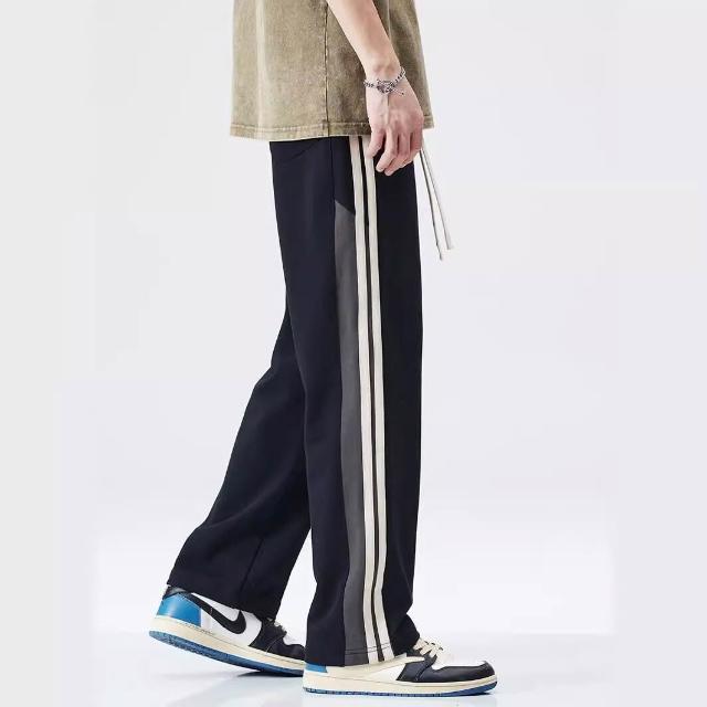 漫語 春秋新款直筒休閑側邊條紋衛褲男士美式潮牌ins高街運動百搭褲子