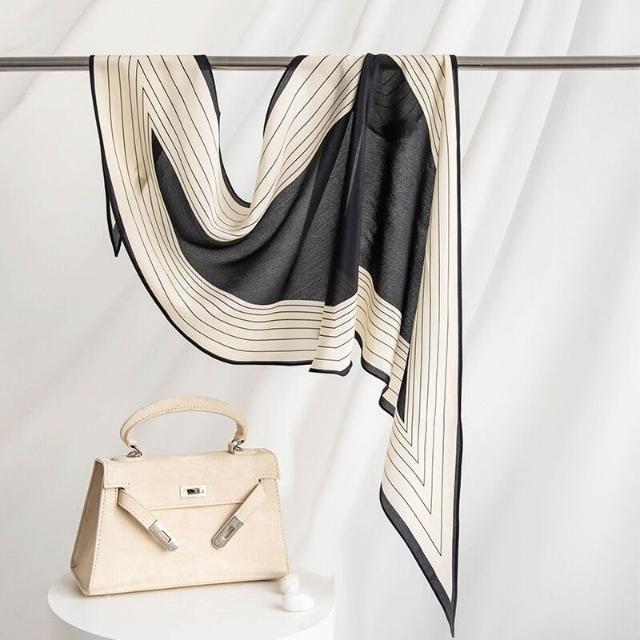 漫語 2026新款百搭高級感真絲圍巾復古文藝氣質女士通勤圍巾雙绉菱形巾
