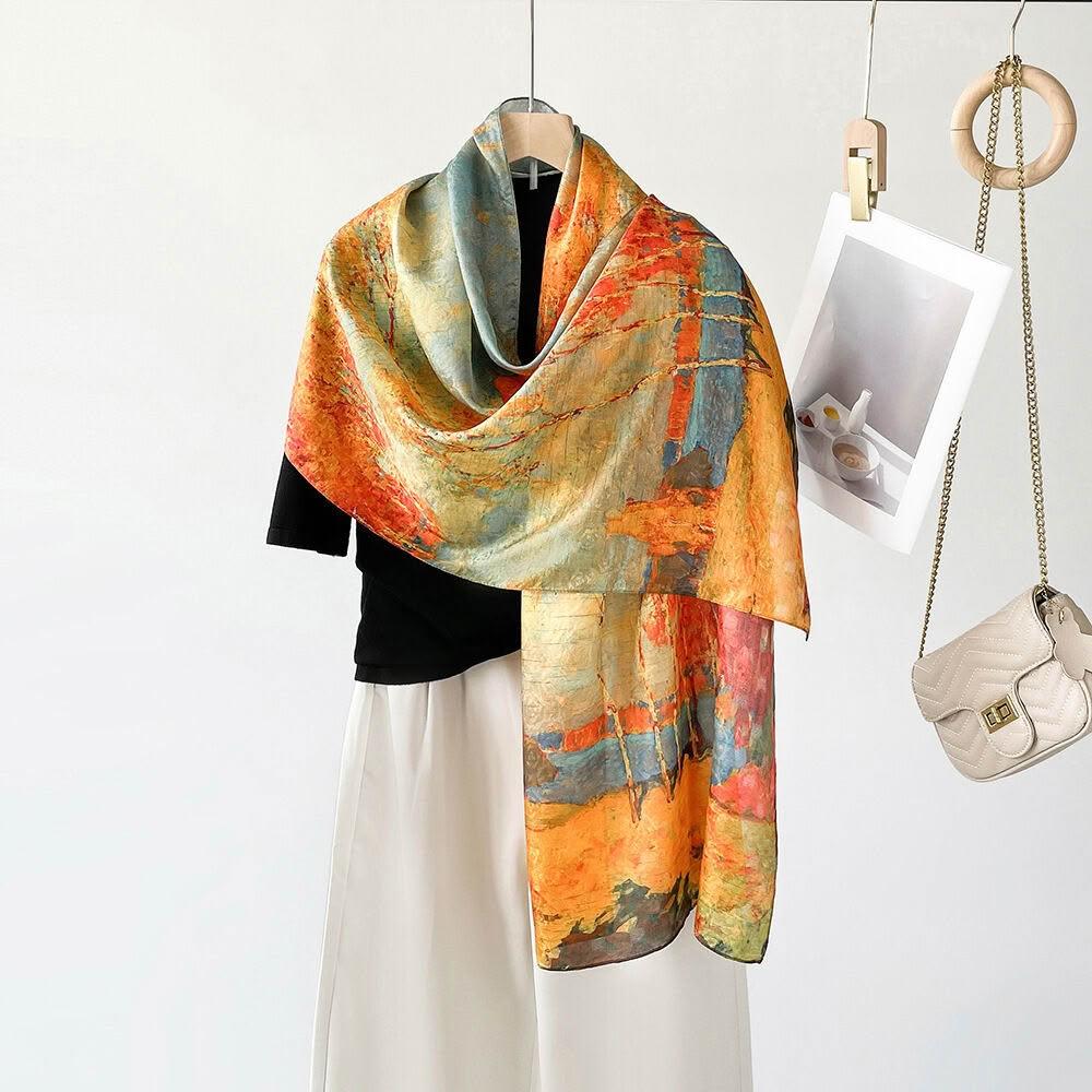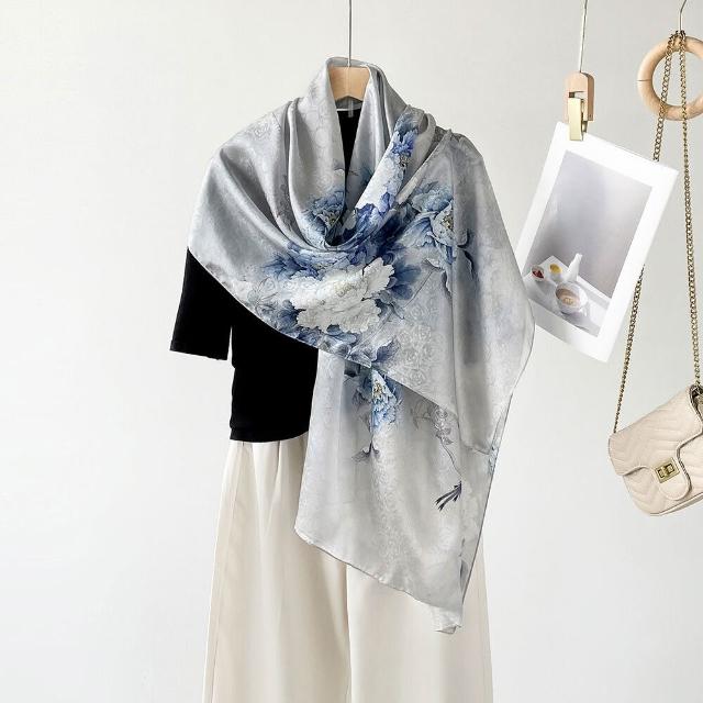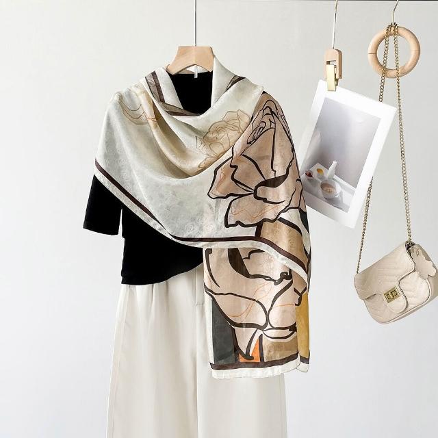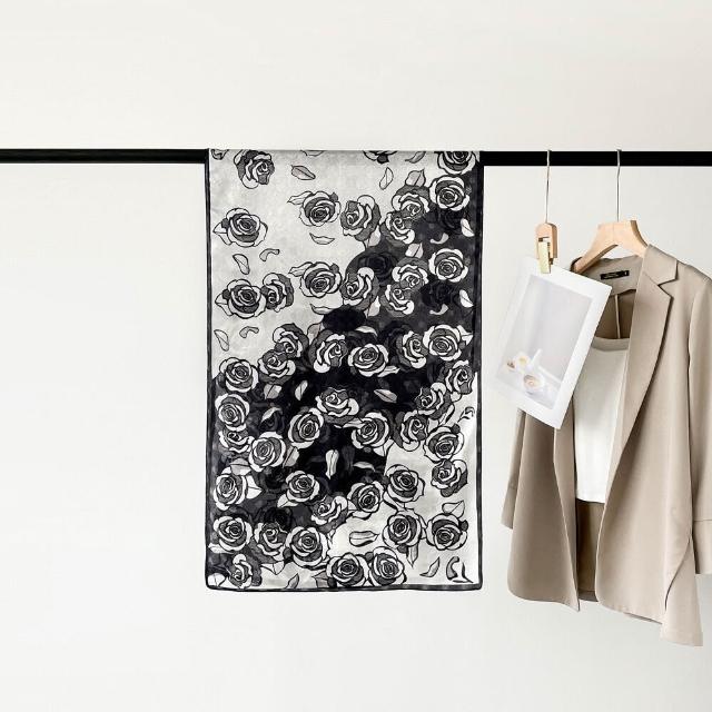 漫語 春-夏新款真絲圍巾女士長巾真絲桑蠶絲玫瑰桑波緞提花防曬披肩