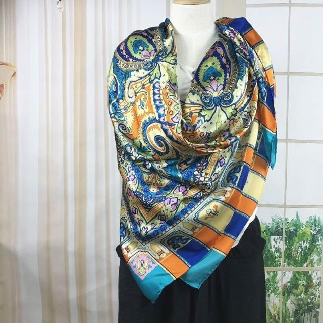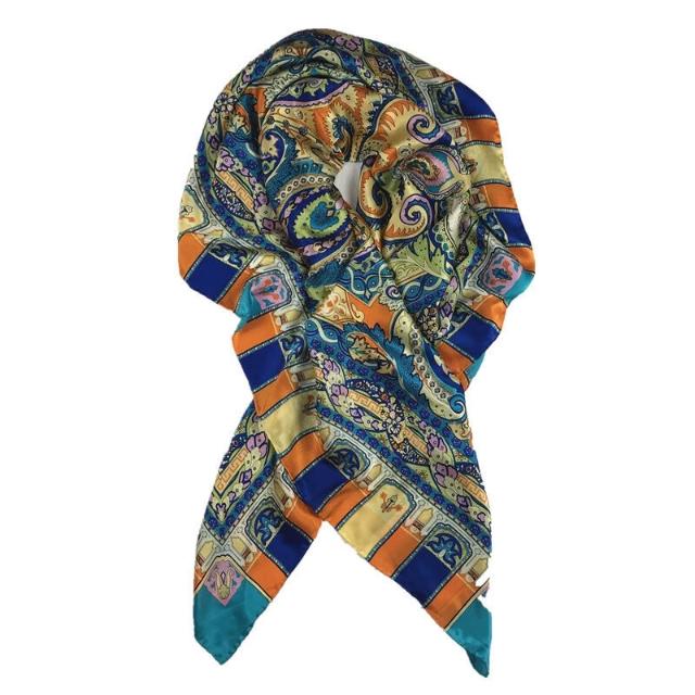 漫語 140真絲印花方巾桑蠶絲絲巾圍巾披肩女士春夏秋冬服飾搭配
