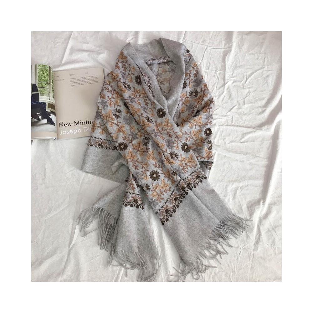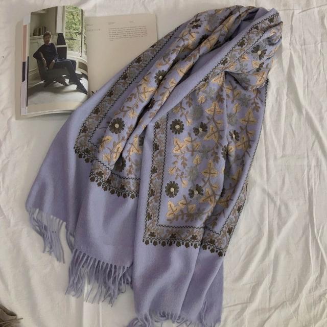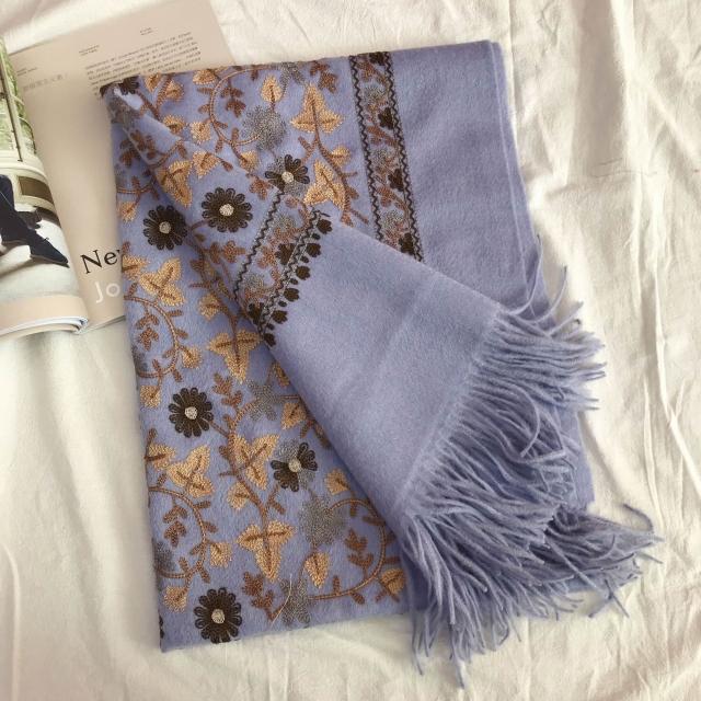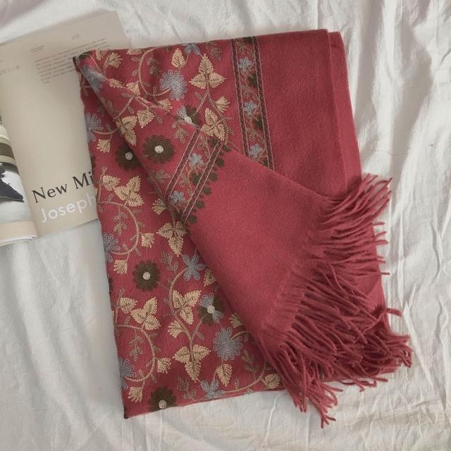 漫語 羊毛圍巾女冬季刺繡尼泊爾繡花民族風羊絨加厚保暖披肩兩用