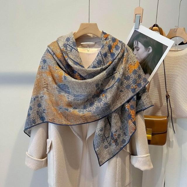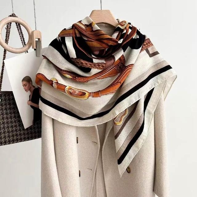 漫語 圍巾披肩方巾女士秋冬季真絲羊毛外搭媽媽新款兩用高級感絲巾