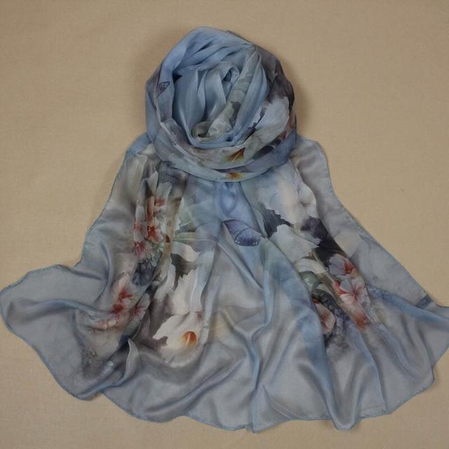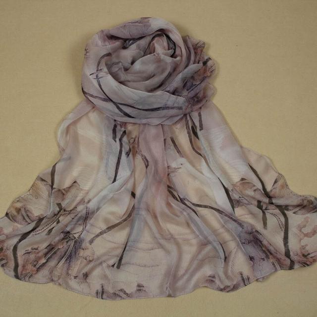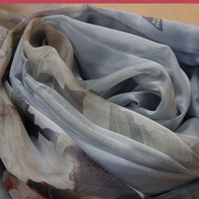 漫語 春款真絲絲巾女圍巾大尺寸電噴桑蠶絲防曬手工邊圍巾 廠家直銷