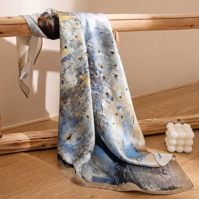 漫語 2026新款四季 斜紋桑蠶絲真絲絲巾女士大牡丹印花方巾防曬65CM