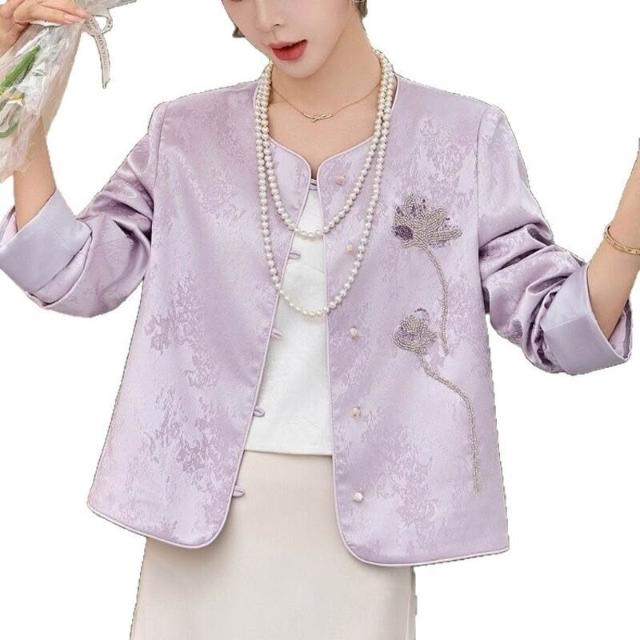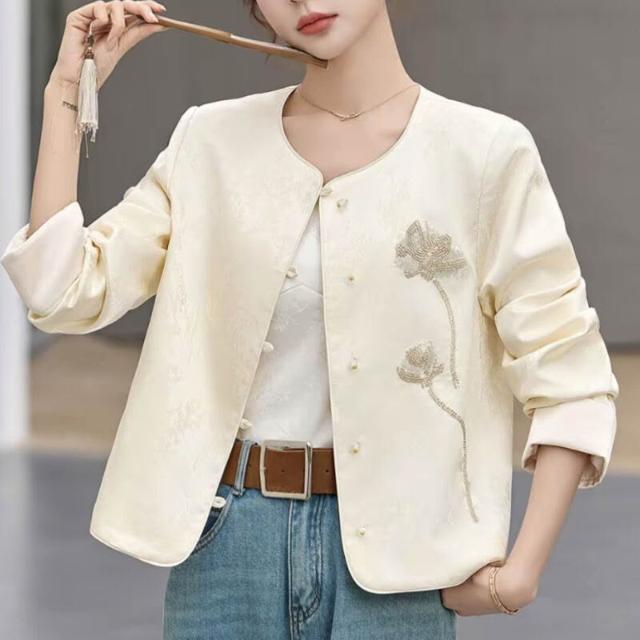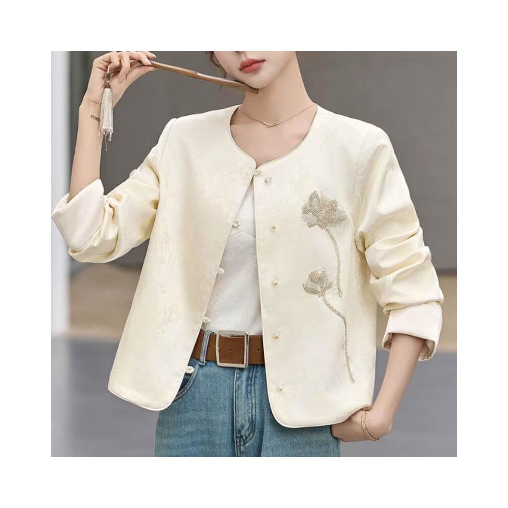 漫語 新中式輕國風小香風 短款 外套 春季時尚釘珠提花氣質高級感 上衣 開衫