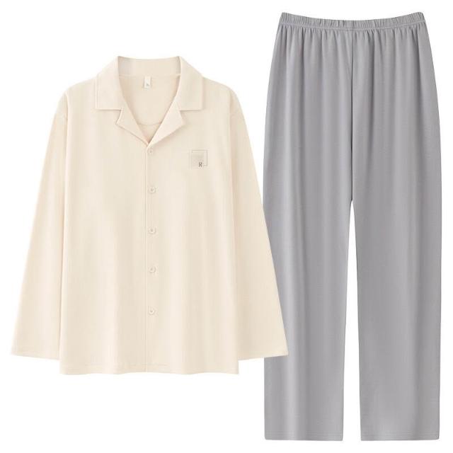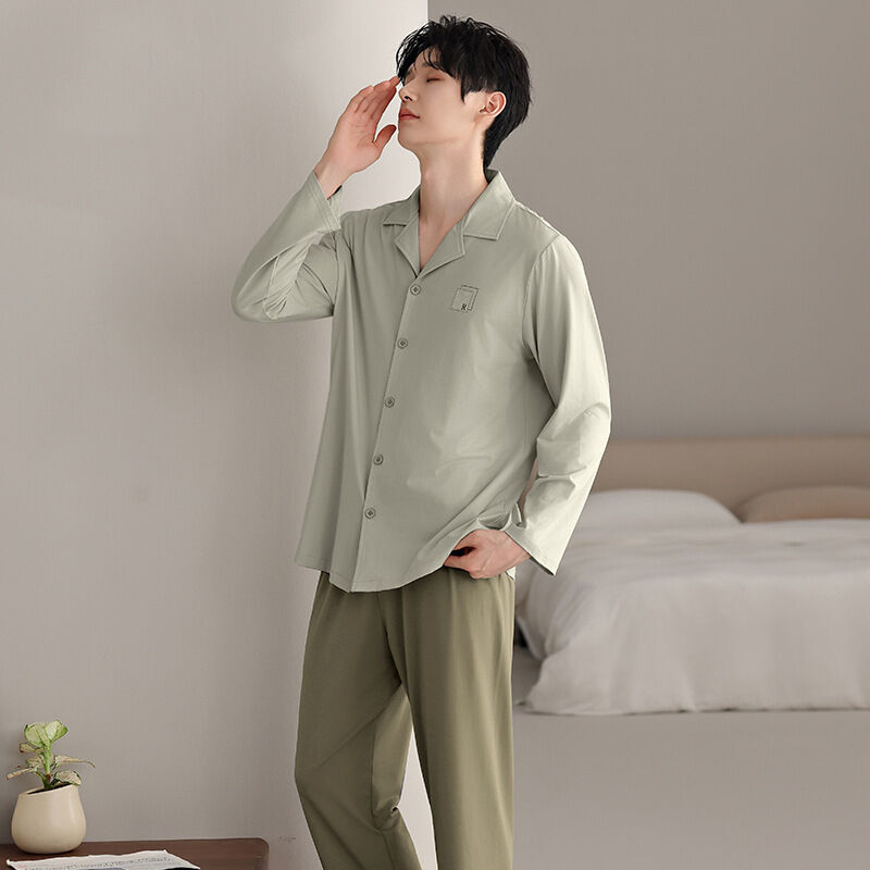 漫語 2026新款男士 睡衣 純棉開衫 長袖 簡約舒適休閑純色春秋季男士 家居服
