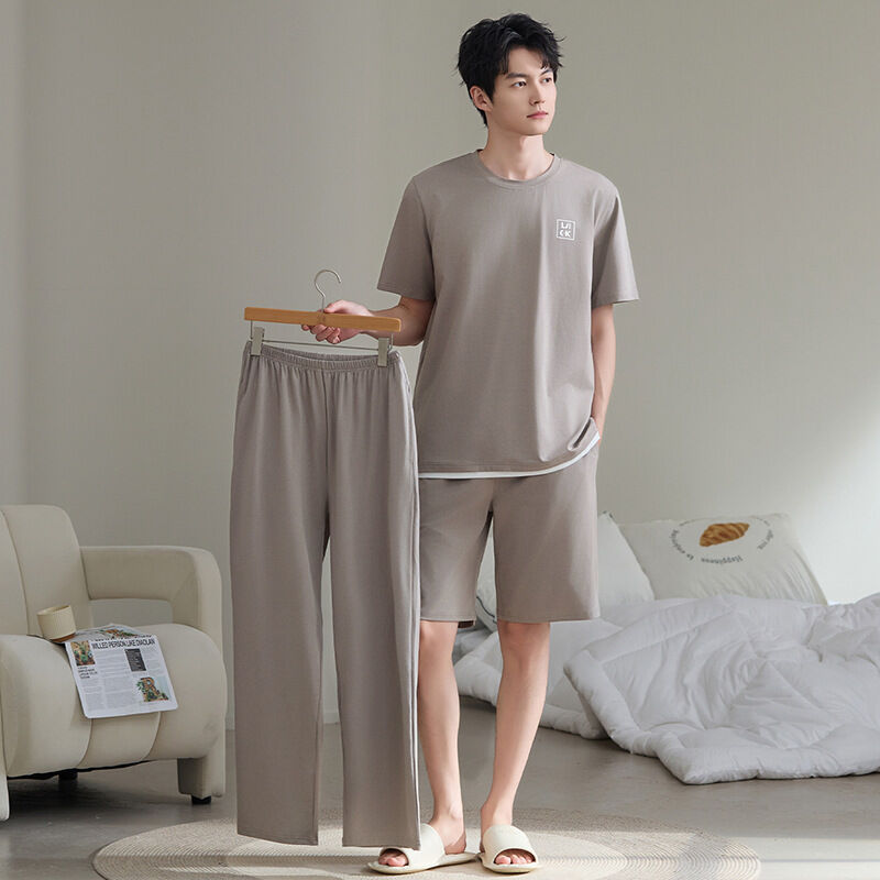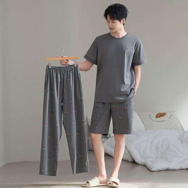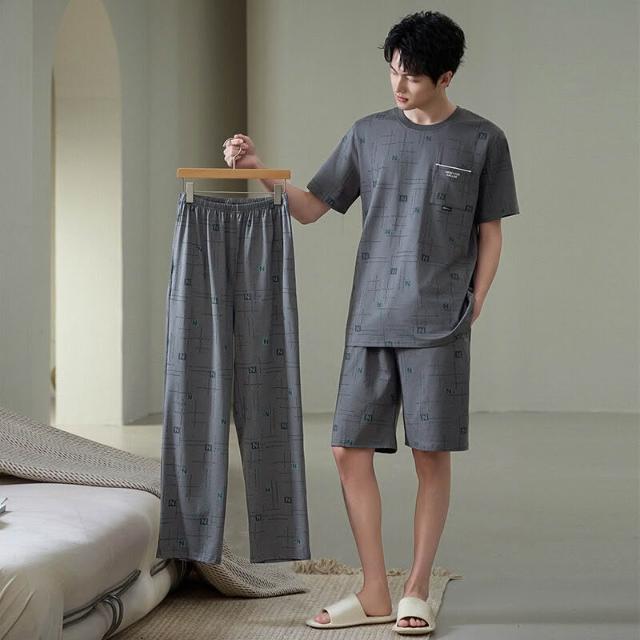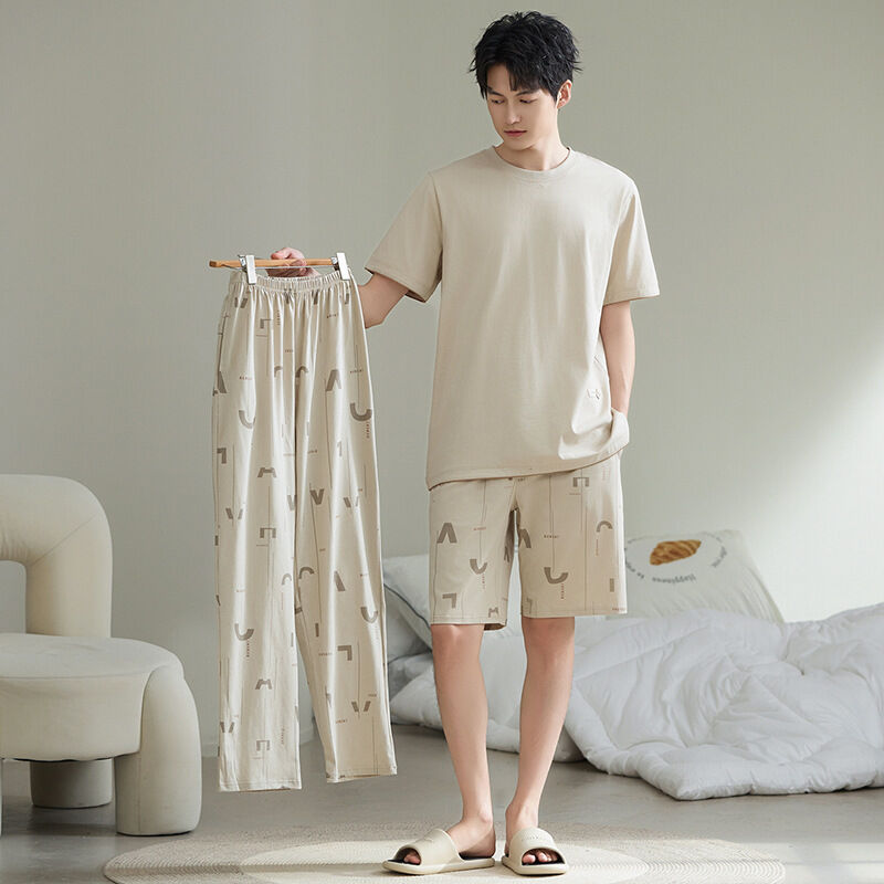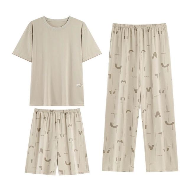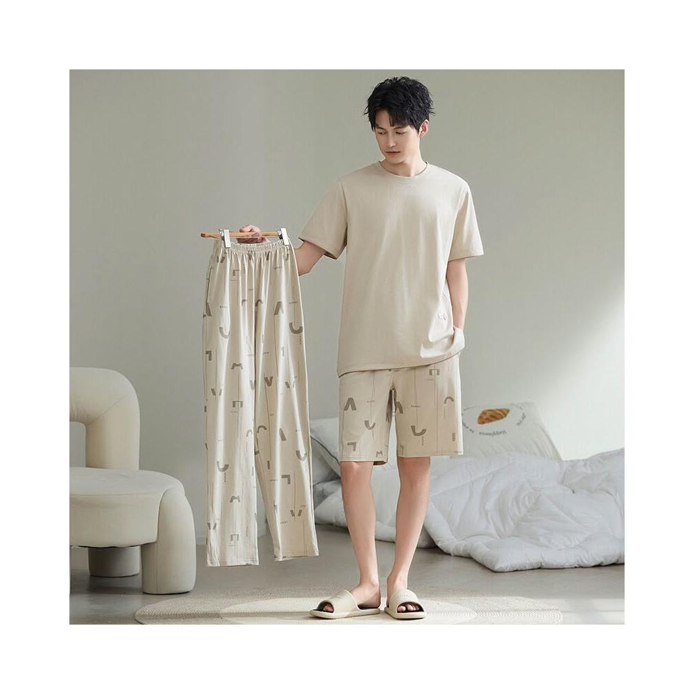漫語 夏季純棉男士短袖睡衣家居服三件套少年款大碼寬松可外穿2026新款