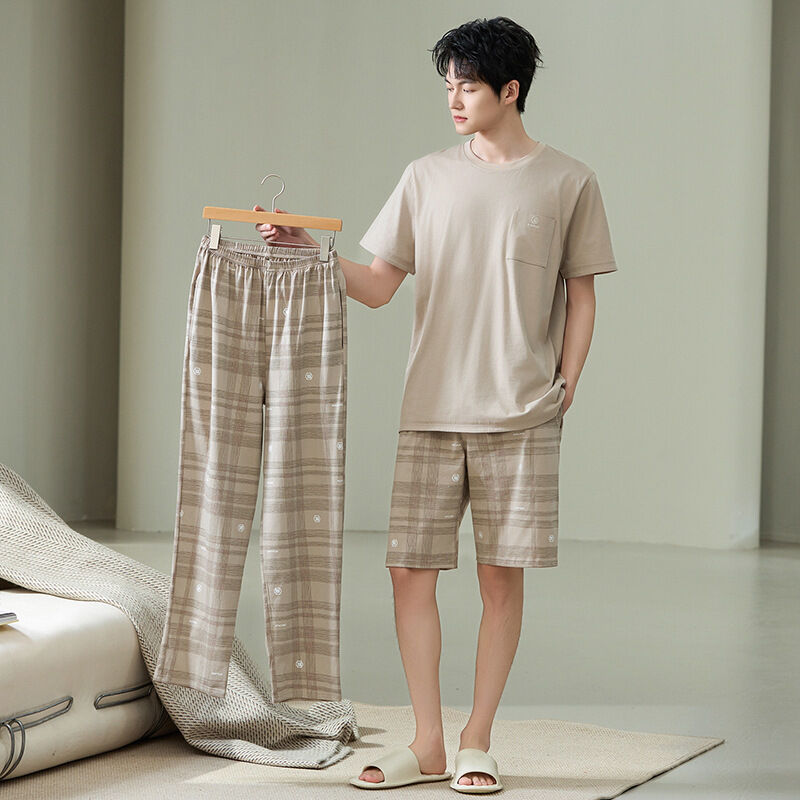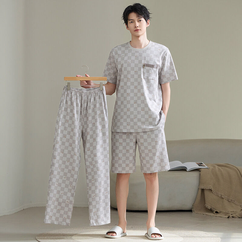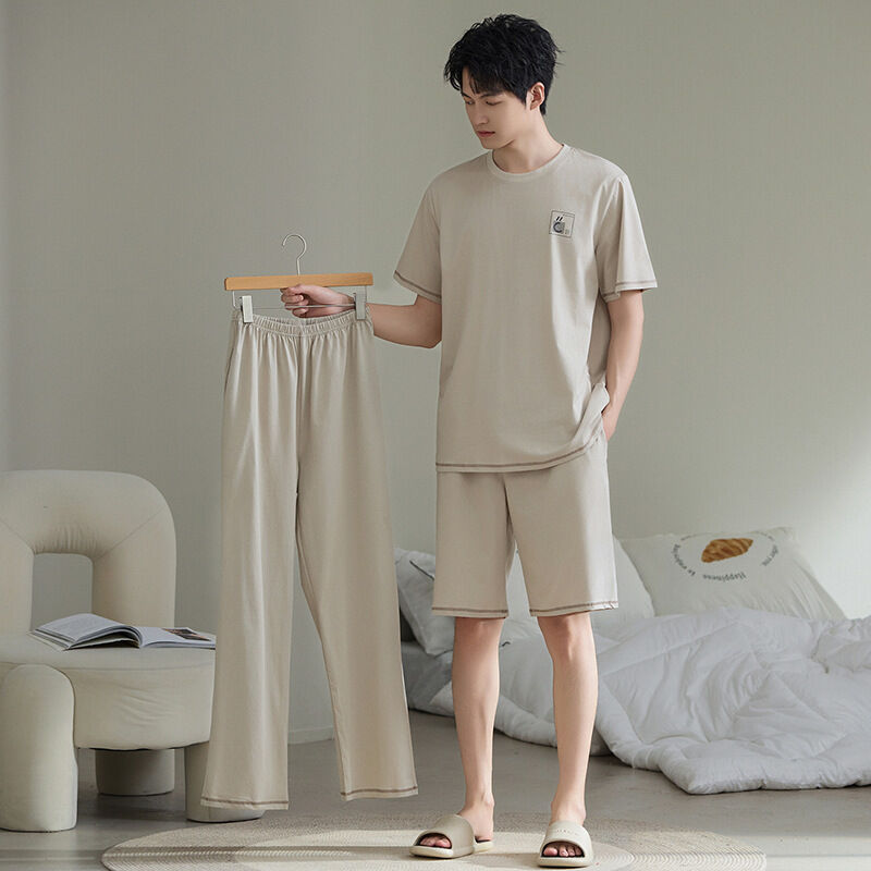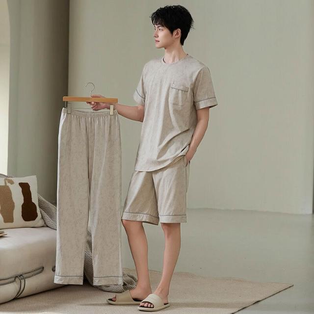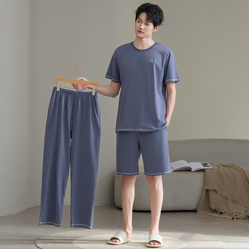 漫語 夏季純棉男士短袖睡衣家居服三件套少年款大碼寬松可外穿2026新款