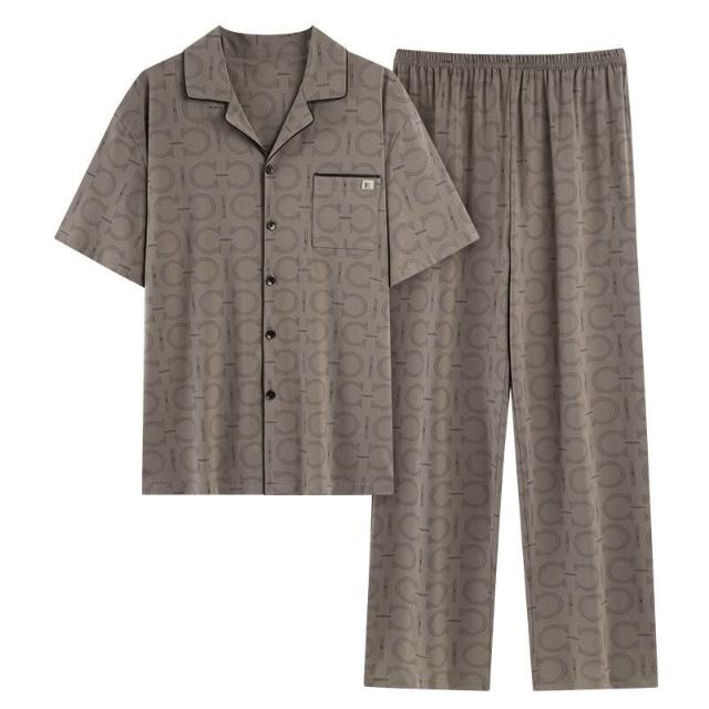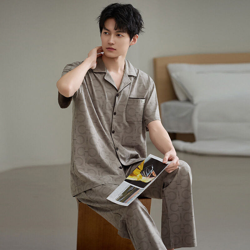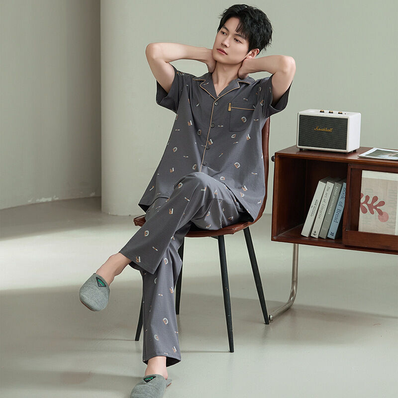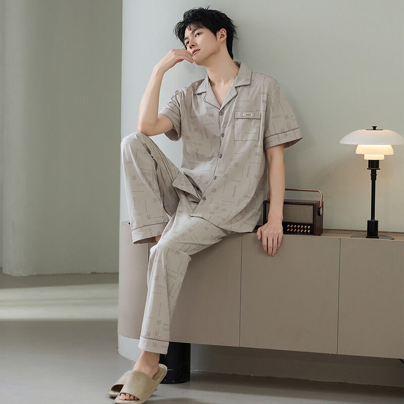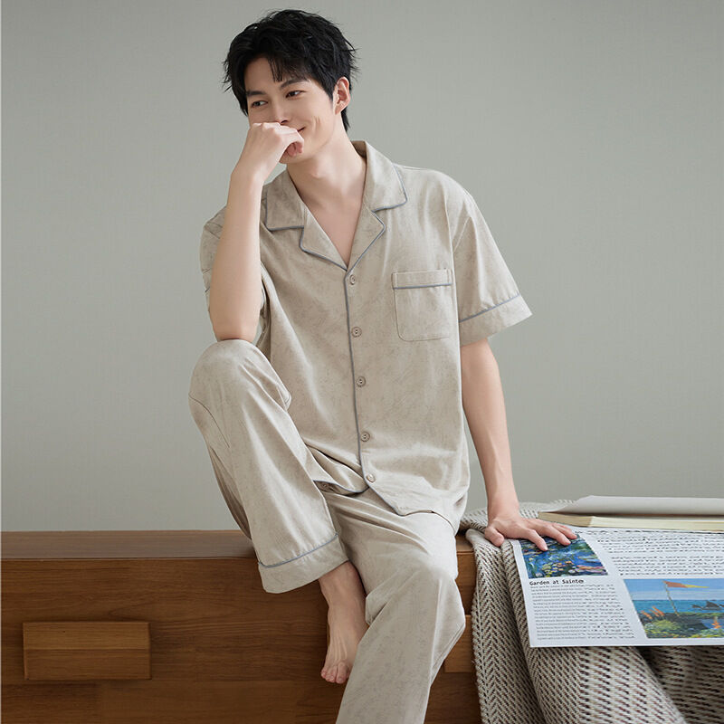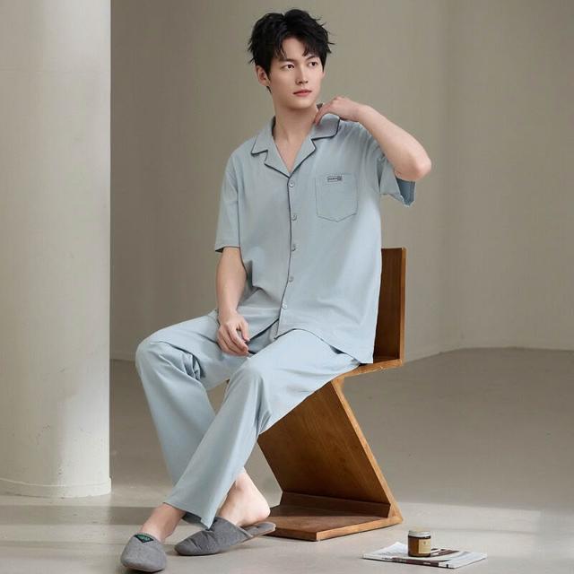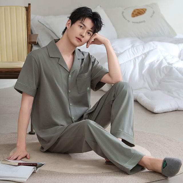 漫語 睡衣男夏季純棉短袖長褲男士薄款夏天大碼半袖男款夏款家居服套裝