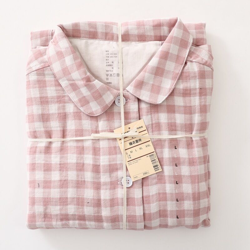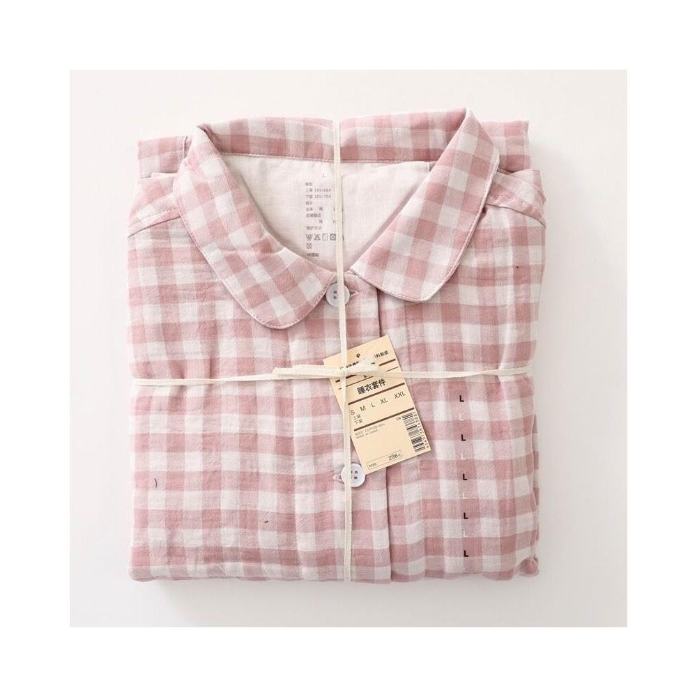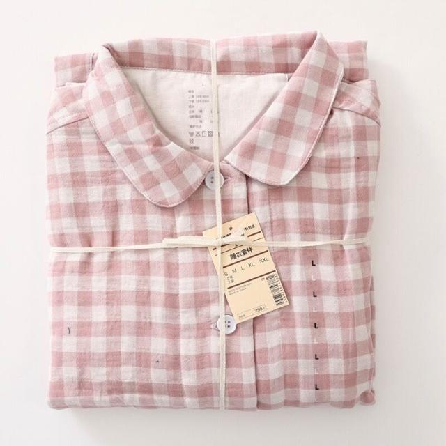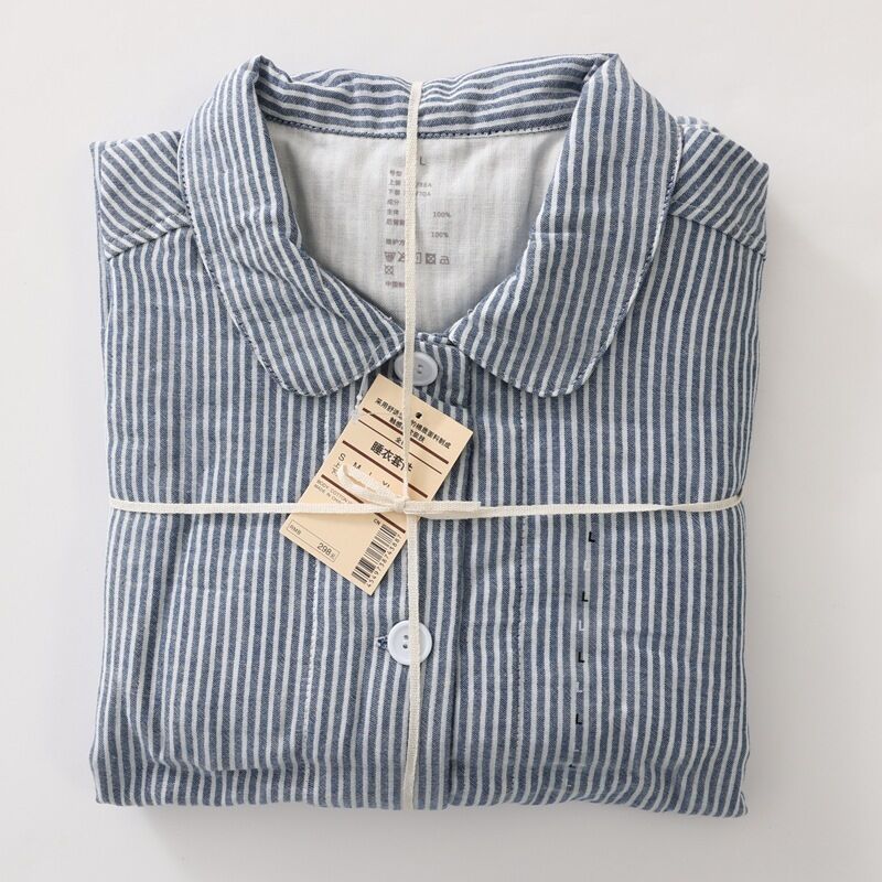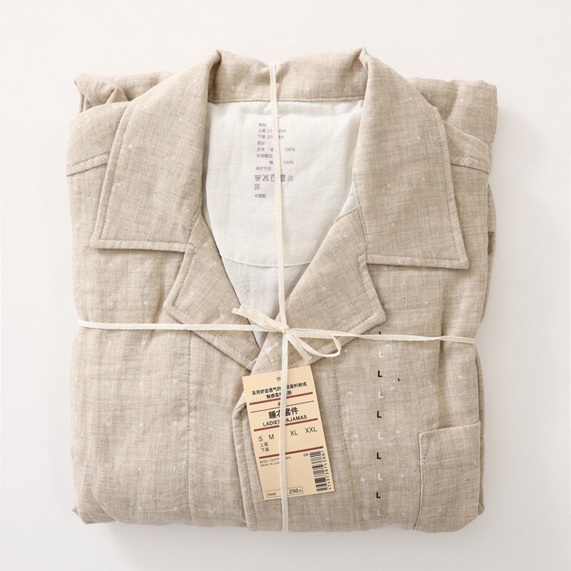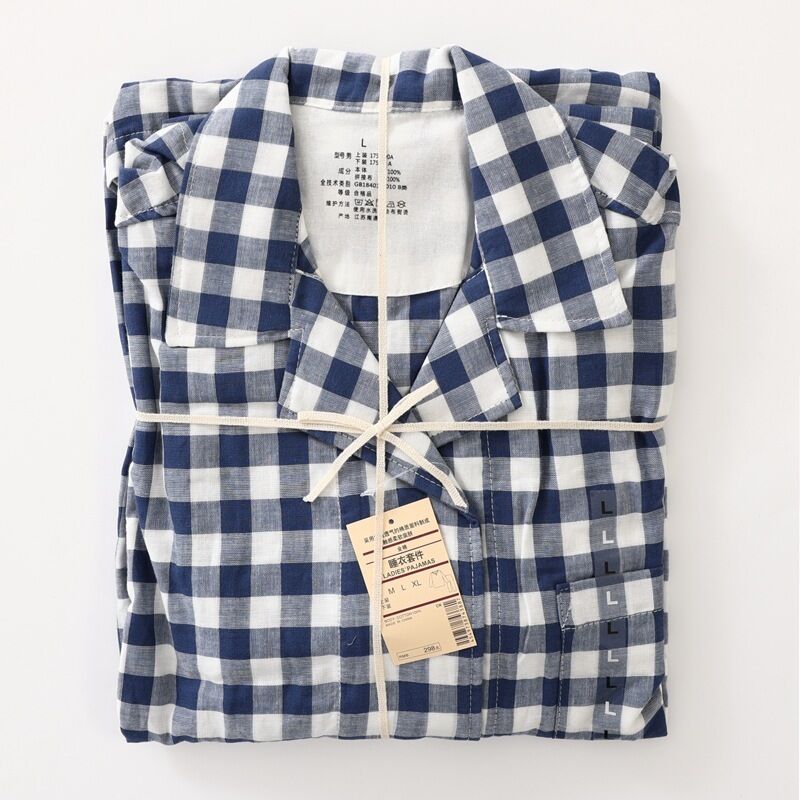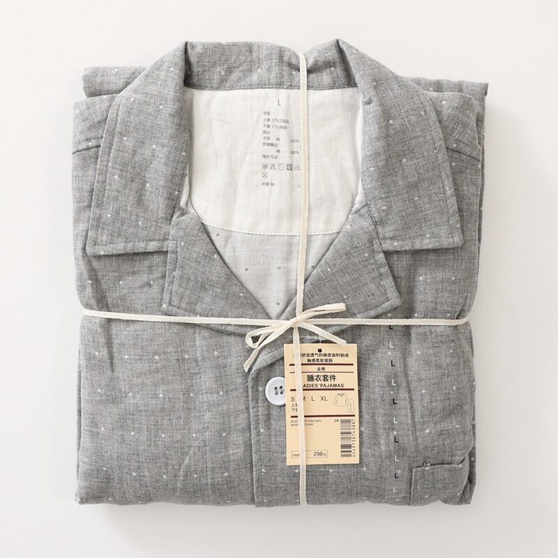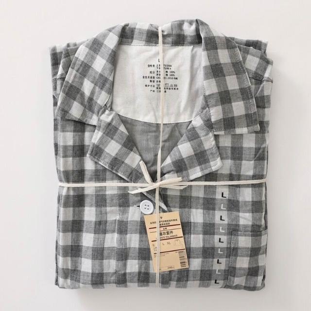 漫語 原單品質無印全棉雙層紗睡衣男女士春夏日式無側縫純棉家居服薄款