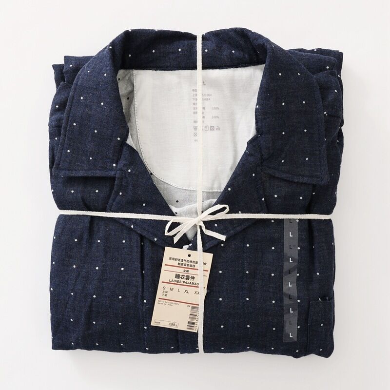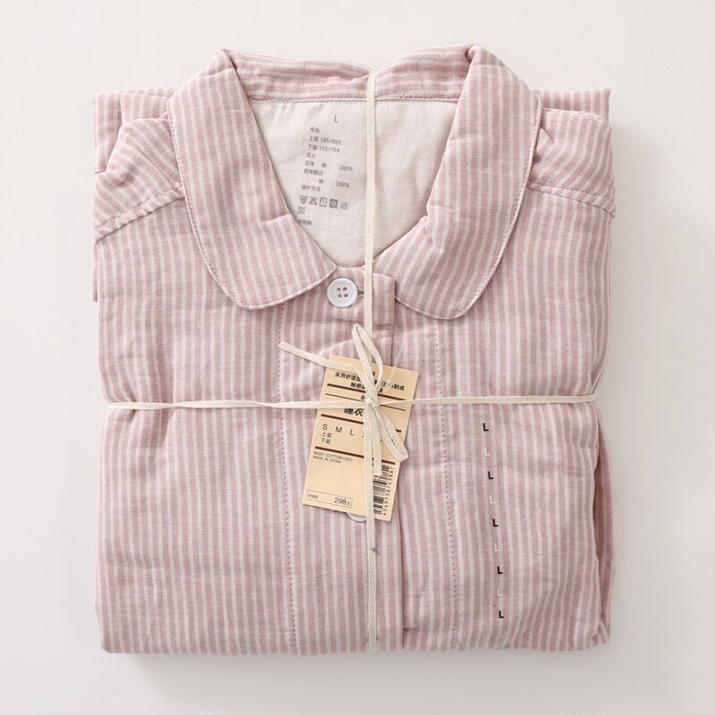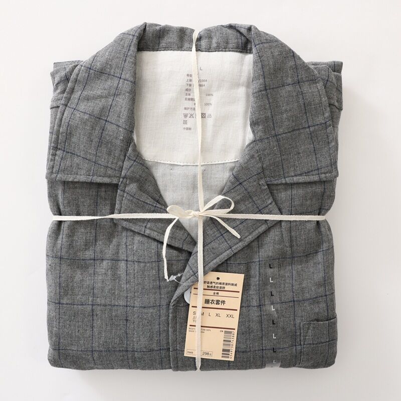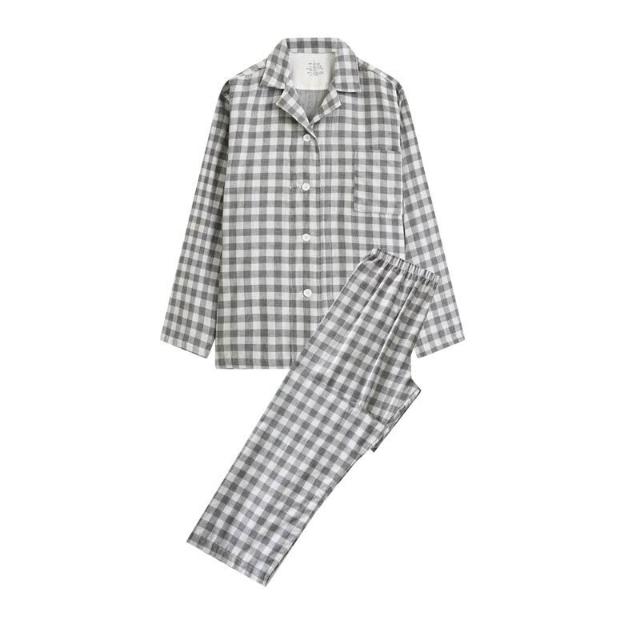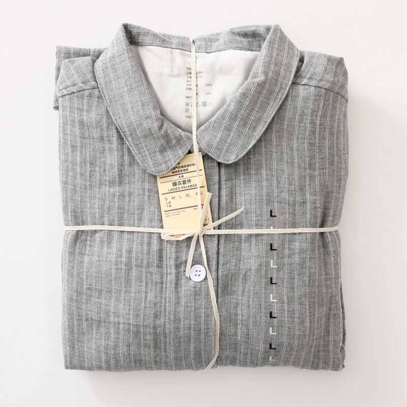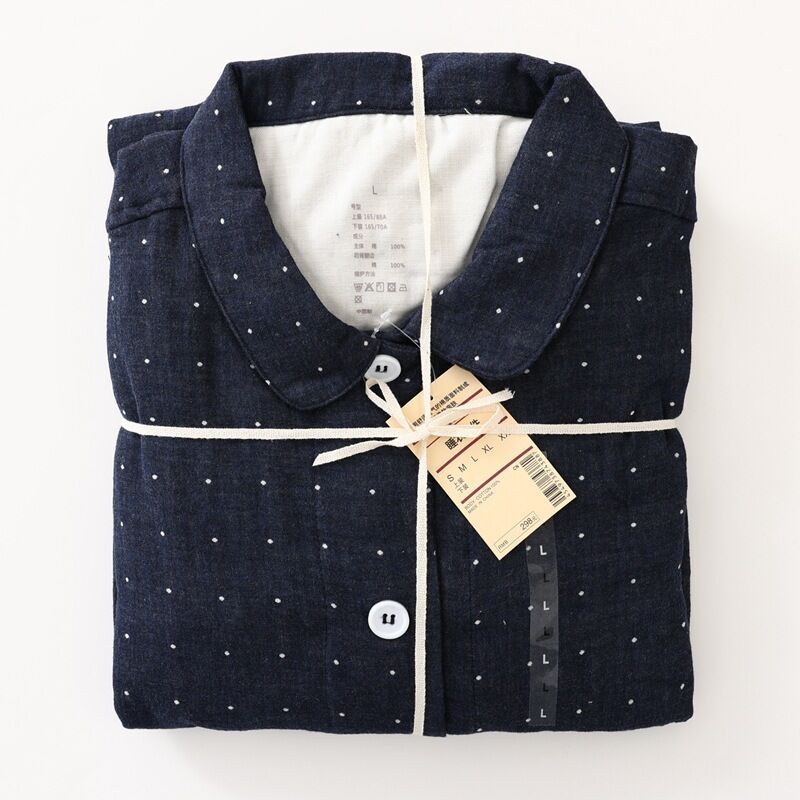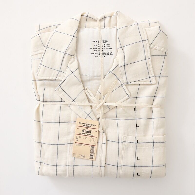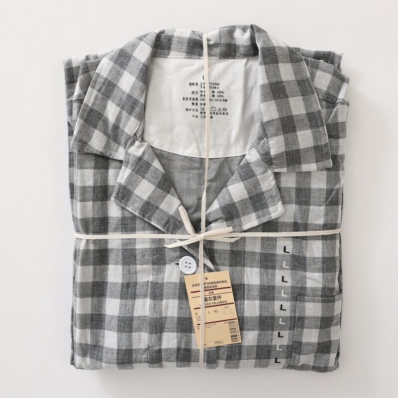 漫語 原單品質無印全棉雙層紗睡衣男女士春夏日式無側縫純棉家居服薄款