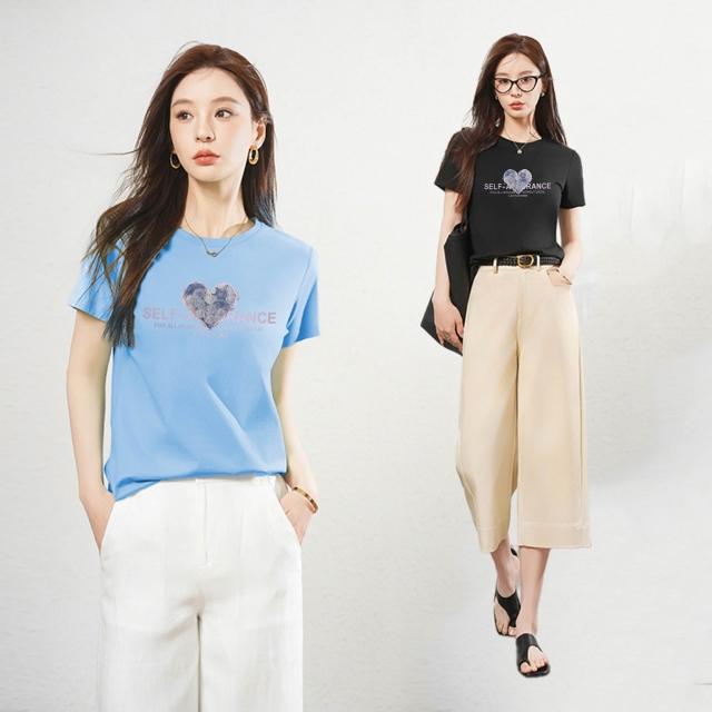 漫語 夏季韓版印花短袖女式t恤衫小眾字母 時尚休閑圓領棉吸汗薄款上衣